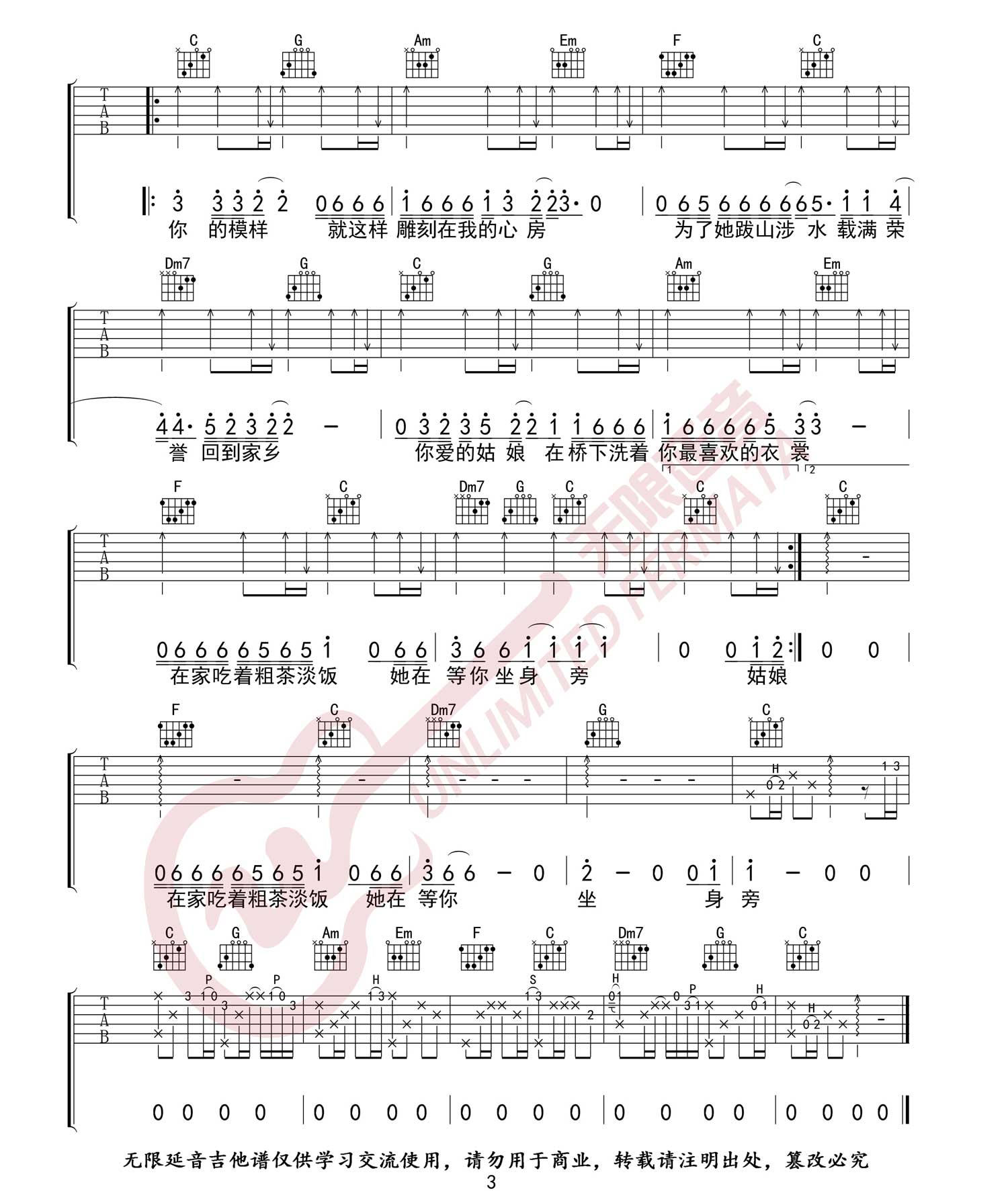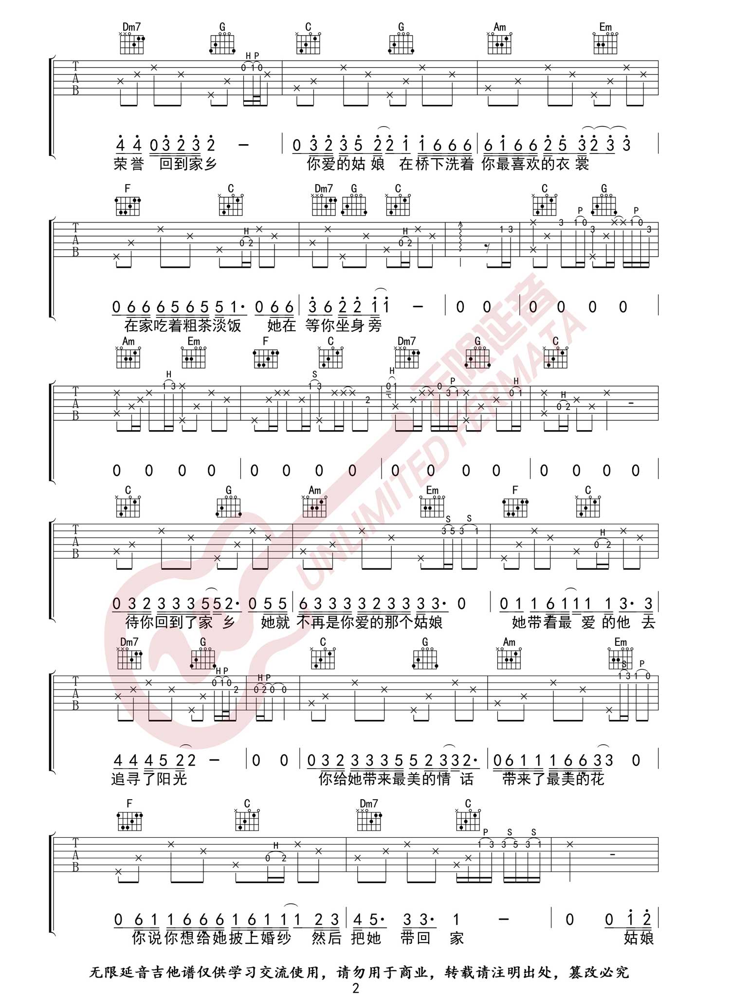 《隔壁老樊《你的姑娘吉他谱》(G调)》内容来自于互联网,不能保证内容的准确性与完整性,仅供学习交流欣赏,请勿用于其它用途,内容版权归原作者及来源网站所有,如有侵犯到您的权益请来信告知,我们将及时删除。