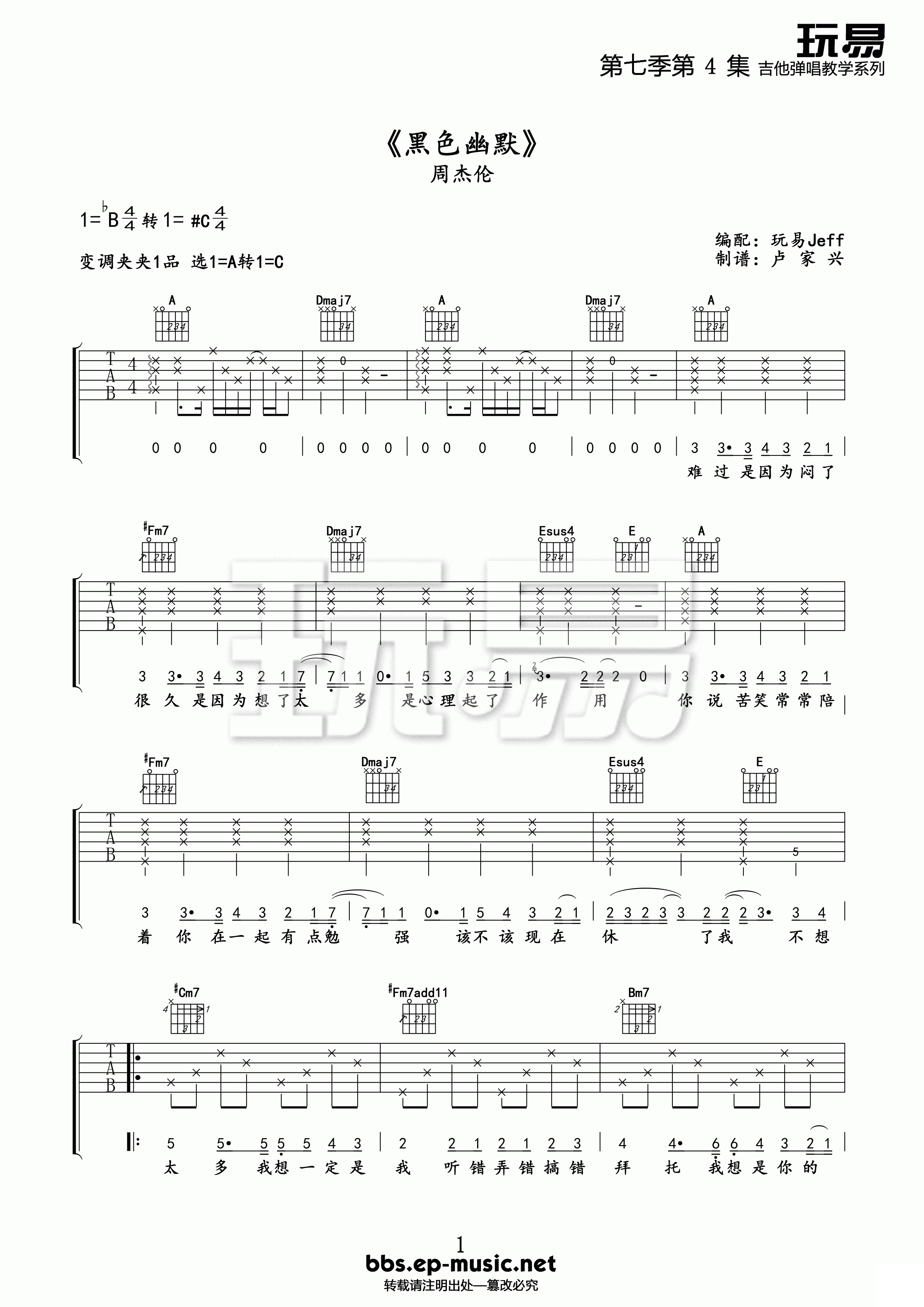 《周杰伦《黑色幽默吉他谱》(C调)》内容来自于互联网,不能保证内容的准确性与完整性,仅供学习交流欣赏,请勿用于其它用途,内容版权归原作者及来源网站所有,如有侵犯到您的权益请来信告知,我们将及时删除。
