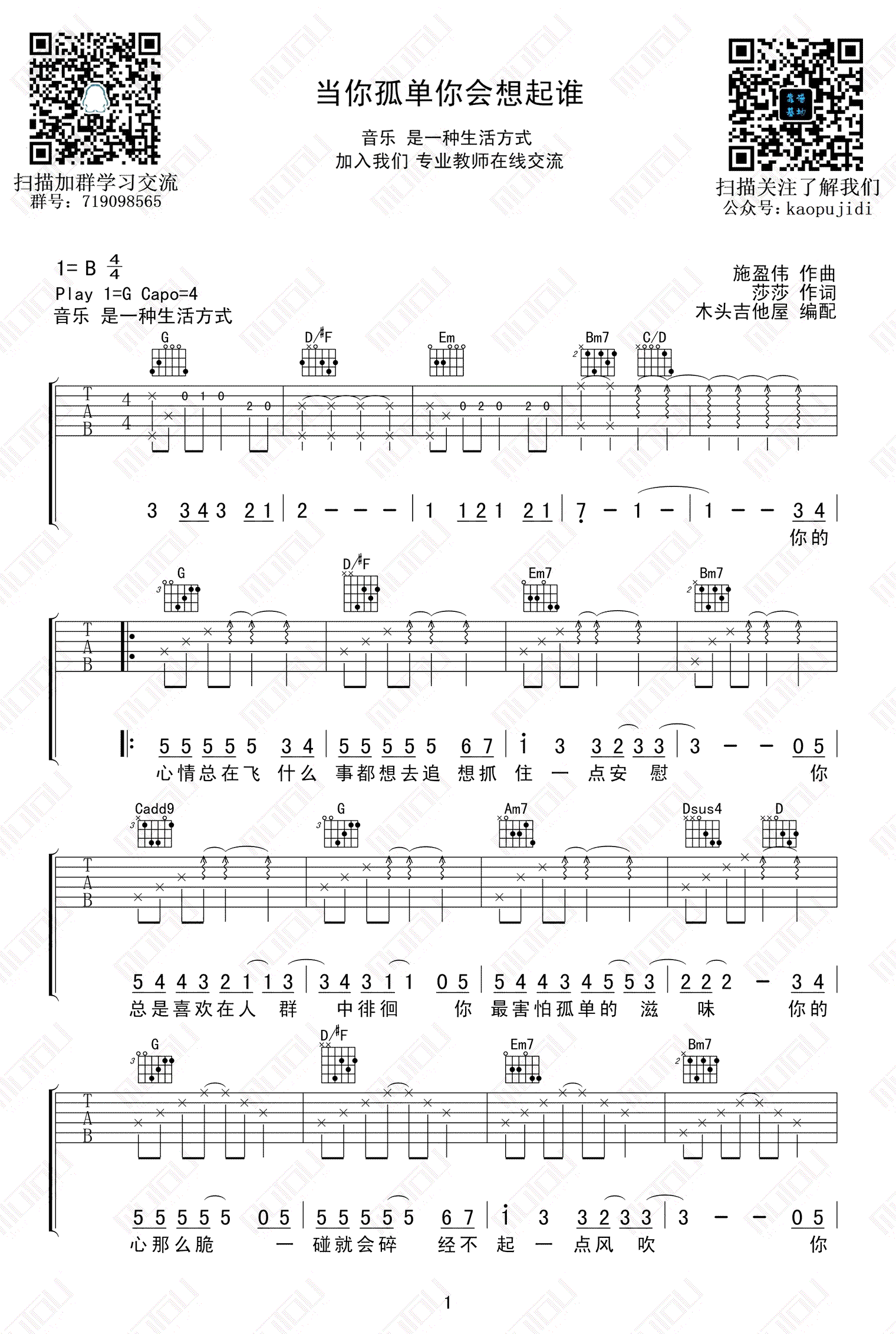 《张栋梁《当你孤单你会想起谁吉他谱》(G调)》内容来自于互联网,不能保证内容的准确性与完整性,仅供学习交流欣赏,请勿用于其它用途,内容版权归原作者及来源网站所有,如有侵犯到您的权益请来信告知,我们将及时删除。