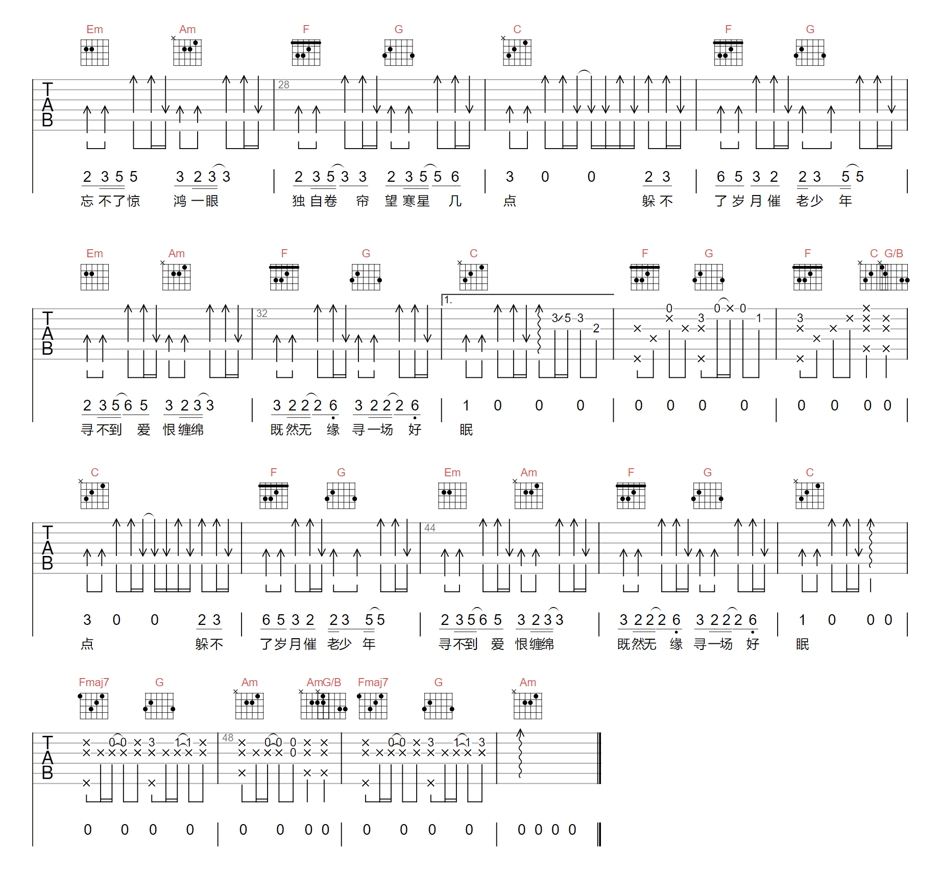 曹雨航/朝歌夜弦《江湖之间吉他谱》(C调)
