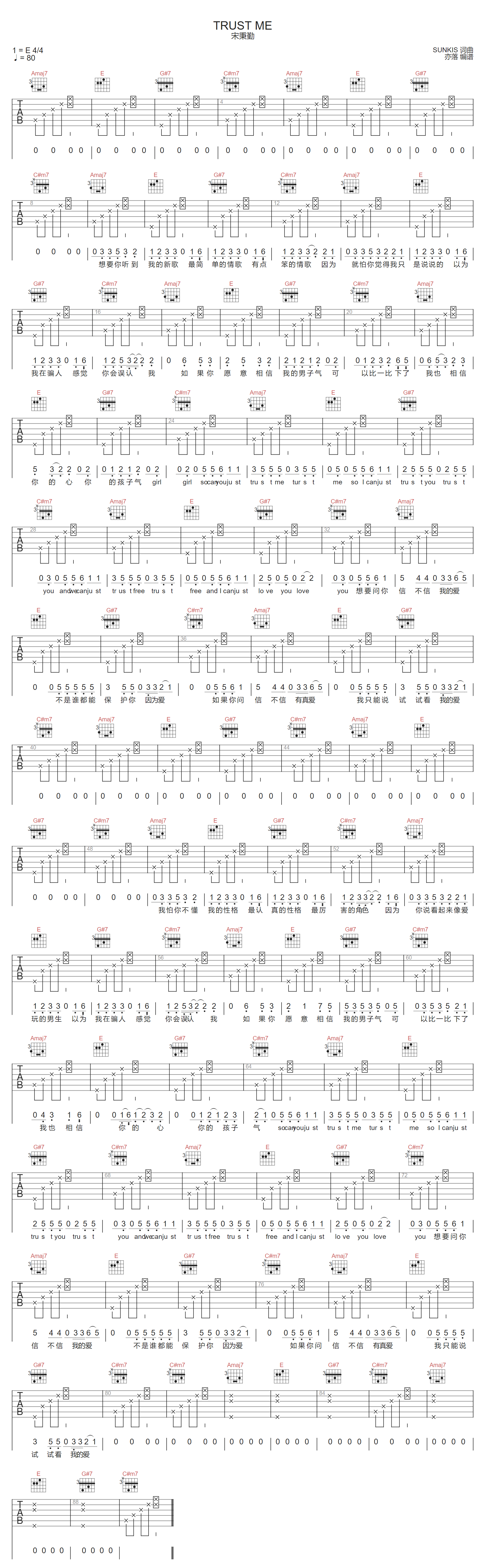 宋秉勤《Trust Me吉他谱》(C调)