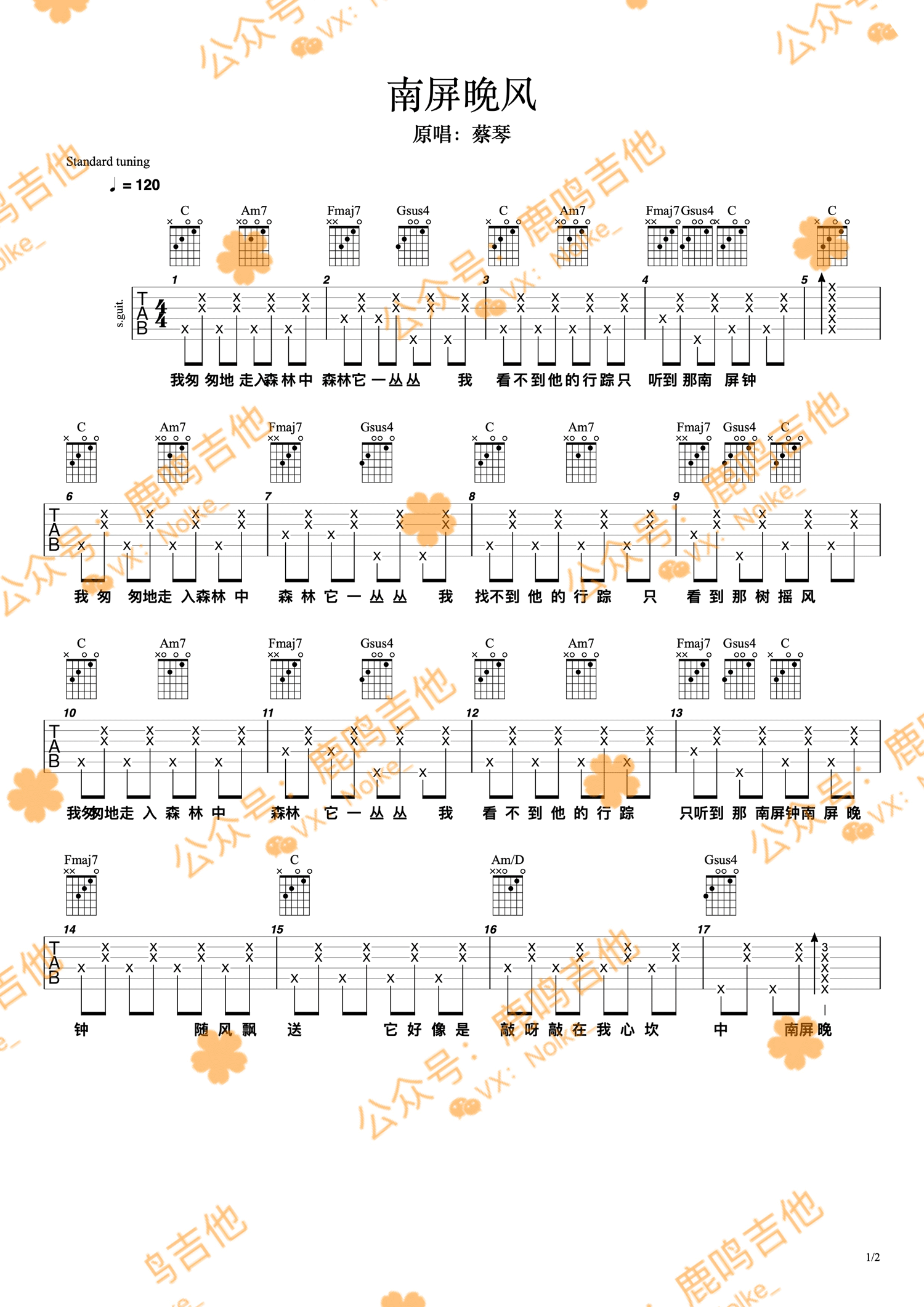 《蔡琴《南屏晚钟吉他谱》(G调)》内容来自于互联网,不能保证内容的准确性与完整性,仅供学习交流欣赏,请勿用于其它用途,内容版权归原作者及来源网站所有,如有侵犯到您的权益请来信告知,我们将及时删除。