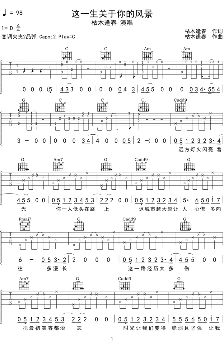 《枯木逢春《这一生关于你的风景吉他谱》(C调)》内容来自于互联网,不能保证内容的准确性与完整性,仅供学习交流欣赏,请勿用于其它用途,内容版权归原作者及来源网站所有,如有侵犯到您的权益请来信告知,我们将及时删除。