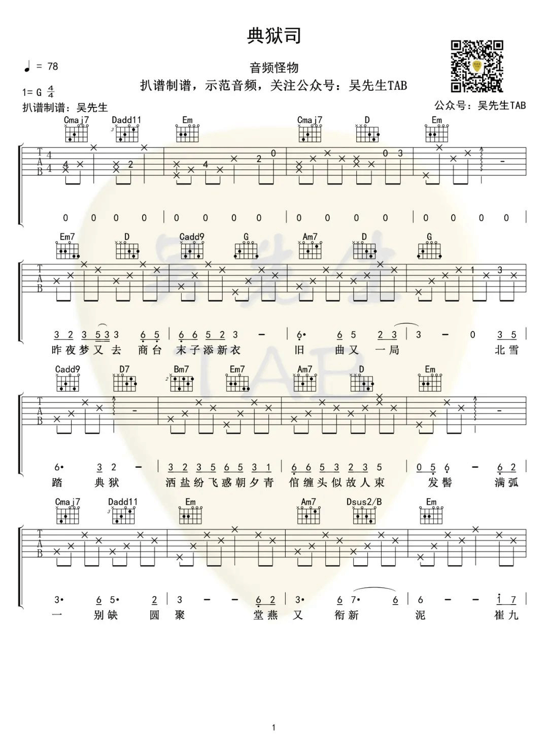 《音频怪物《典狱司吉他谱》(C调)》内容来自于互联网,不能保证内容的准确性与完整性,仅供学习交流欣赏,请勿用于其它用途,内容版权归原作者及来源网站所有,如有侵犯到您的权益请来信告知,我们将及时删除。