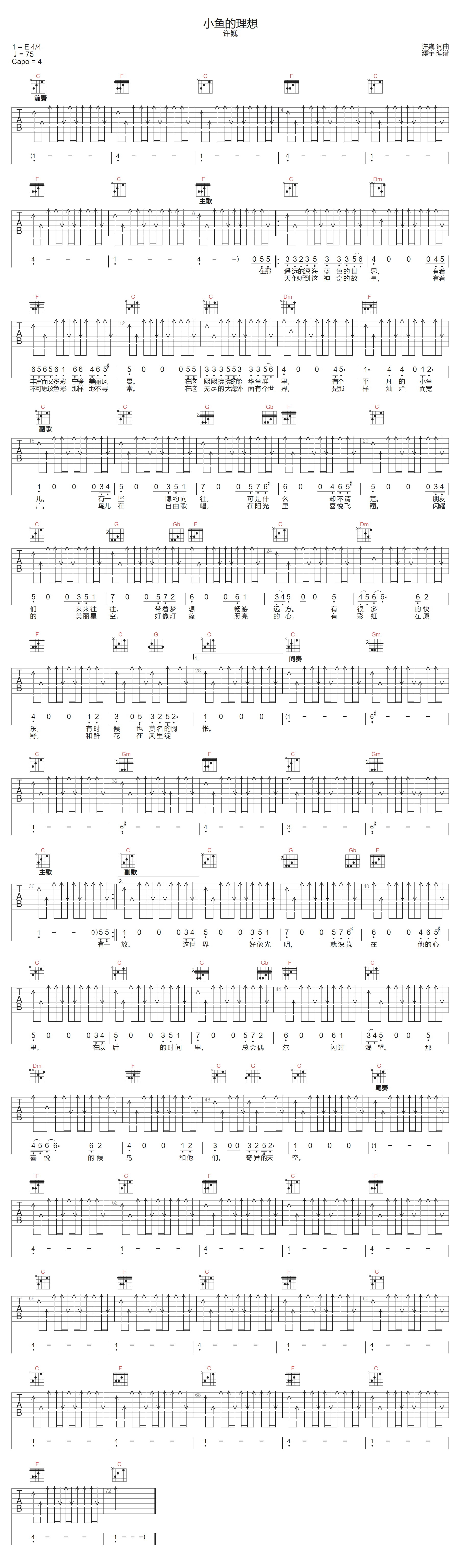 《许巍《小鱼的理想吉他谱》(G调)》内容来自于互联网,不能保证内容的准确性与完整性,仅供学习交流欣赏,请勿用于其它用途,内容版权归原作者及来源网站所有,如有侵犯到您的权益请来信告知,我们将及时删除。