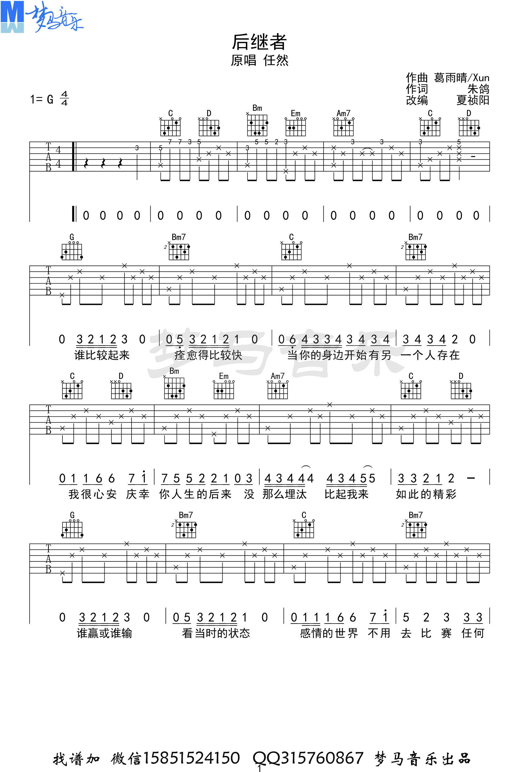 《任然《后继者吉他谱》(G调)》内容来自于互联网,不能保证内容的准确性与完整性,仅供学习交流欣赏,请勿用于其它用途,内容版权归原作者及来源网站所有,如有侵犯到您的权益请来信告知,我们将及时删除。