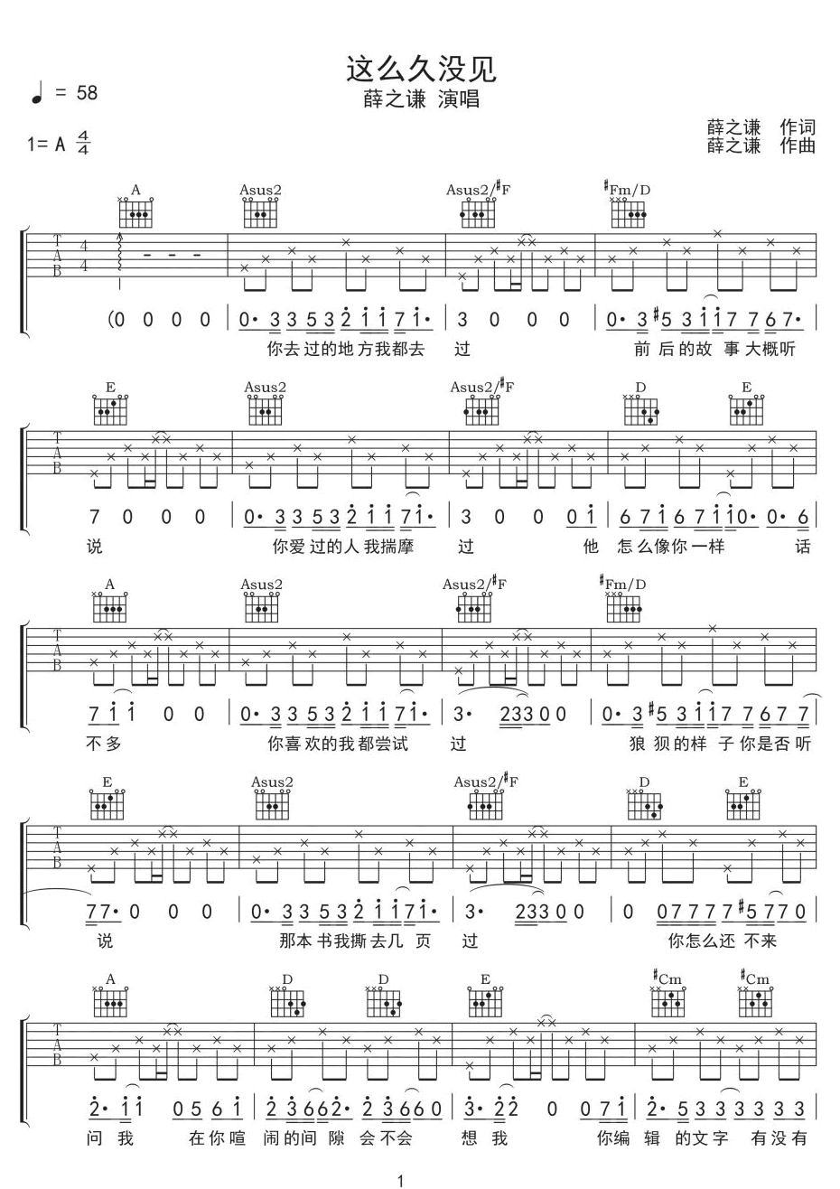 《薛之谦《这么久没见吉他谱》(C调)》内容来自于互联网,不能保证内容的准确性与完整性,仅供学习交流欣赏,请勿用于其它用途,内容版权归原作者及来源网站所有,如有侵犯到您的权益请来信告知,我们将及时删除。