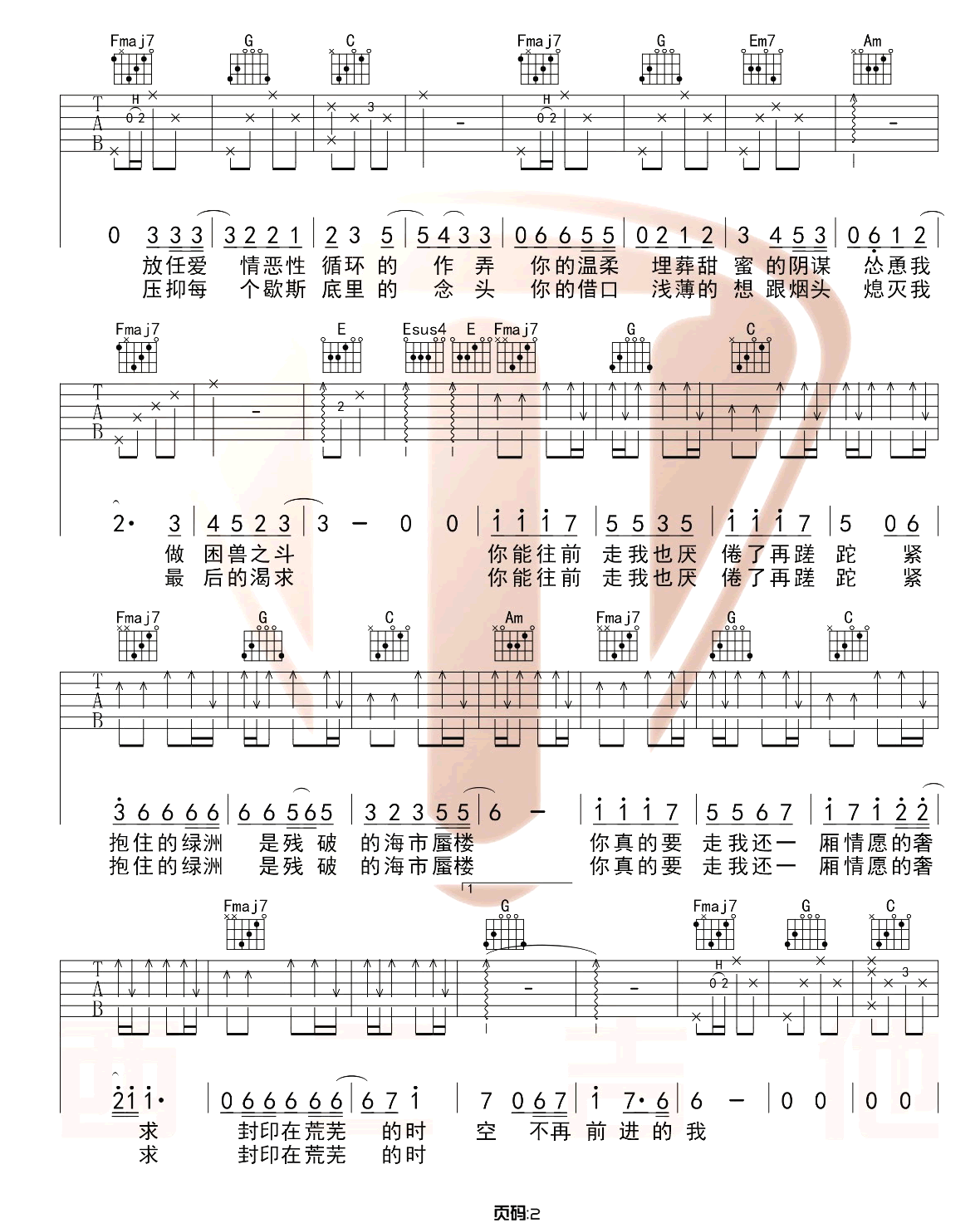《沈以诚/徐佳莹《绿洲吉他谱》(C调)》内容来自于互联网,不能保证内容的准确性与完整性,仅供学习交流欣赏,请勿用于其它用途,内容版权归原作者及来源网站所有,如有侵犯到您的权益请来信告知,我们将及时删除。