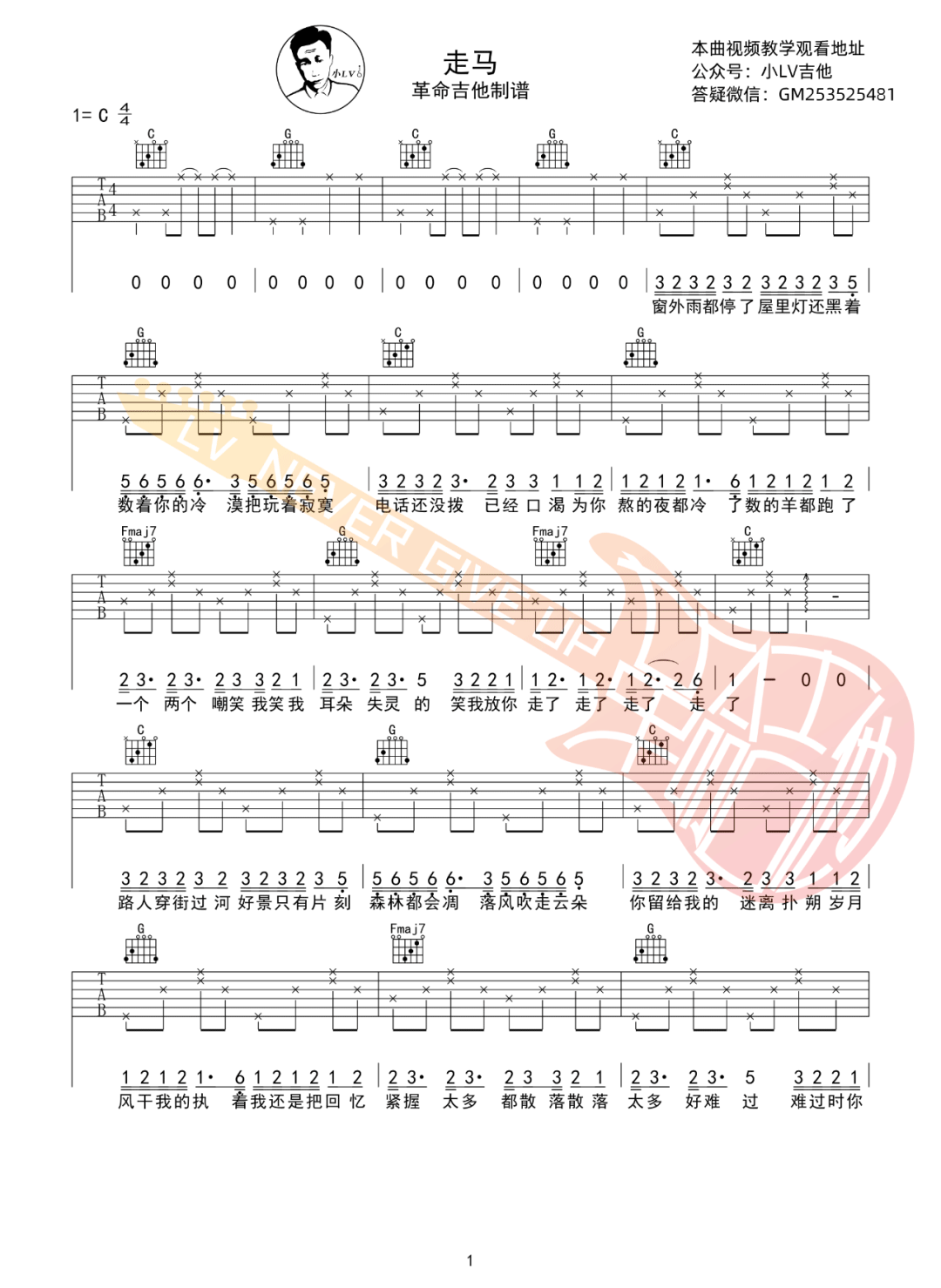 《陈粒《走马吉他谱》(G调)》内容来自于互联网,不能保证内容的准确性与完整性,仅供学习交流欣赏,请勿用于其它用途,内容版权归原作者及来源网站所有,如有侵犯到您的权益请来信告知,我们将及时删除。