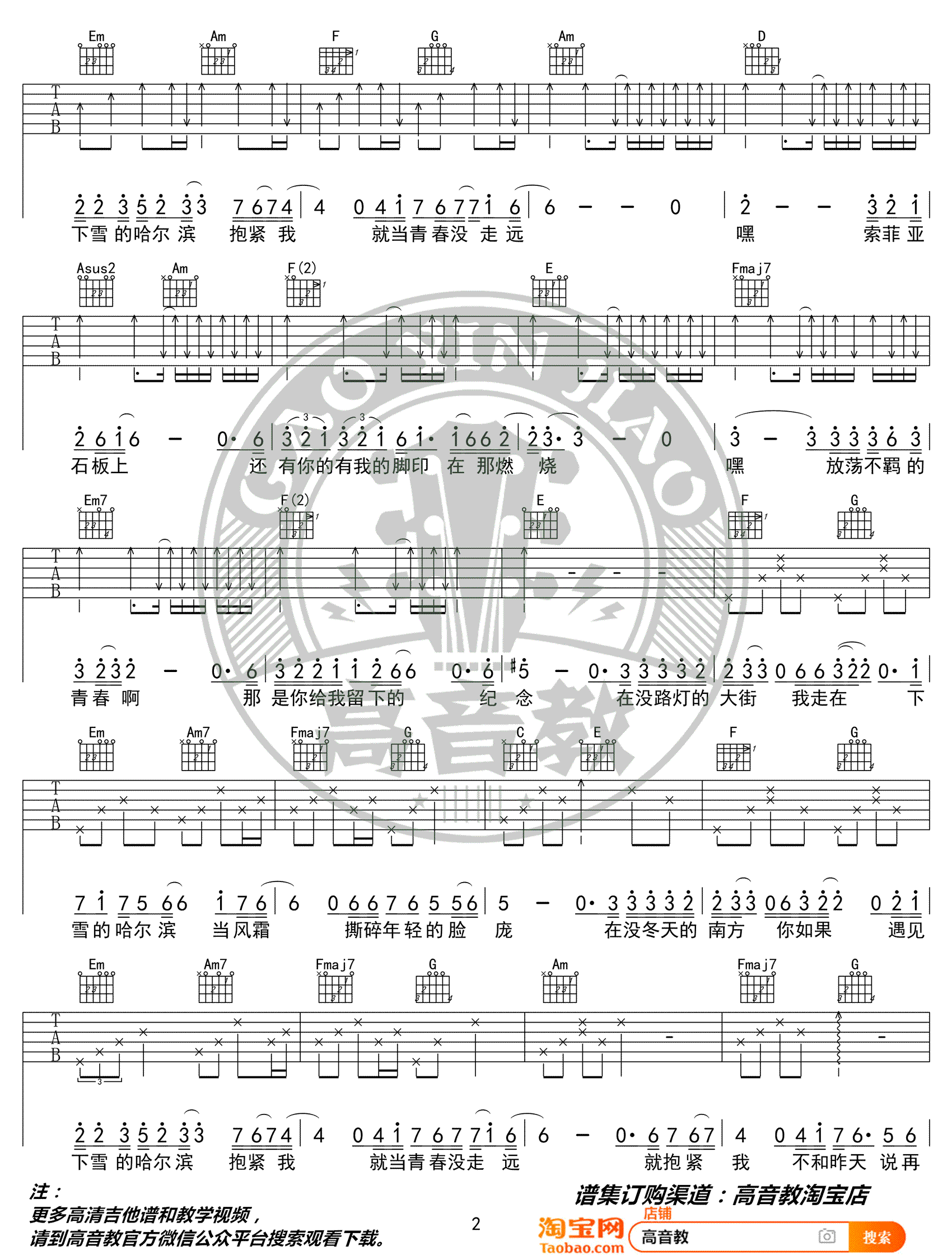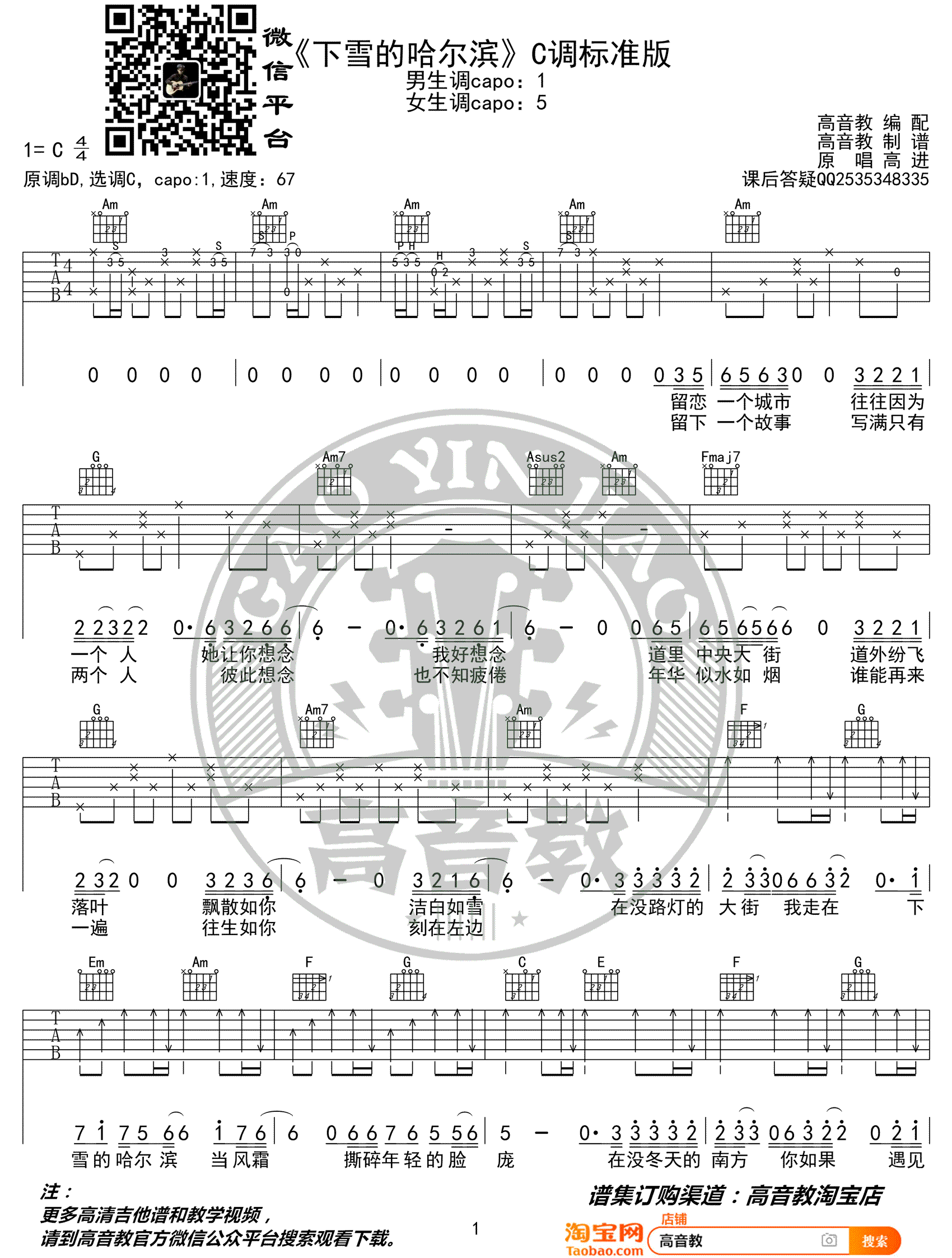 《高进《下雪哈尔滨吉他谱》(C调)》内容来自于互联网,不能保证内容的准确性与完整性,仅供学习交流欣赏,请勿用于其它用途,内容版权归原作者及来源网站所有,如有侵犯到您的权益请来信告知,我们将及时删除。