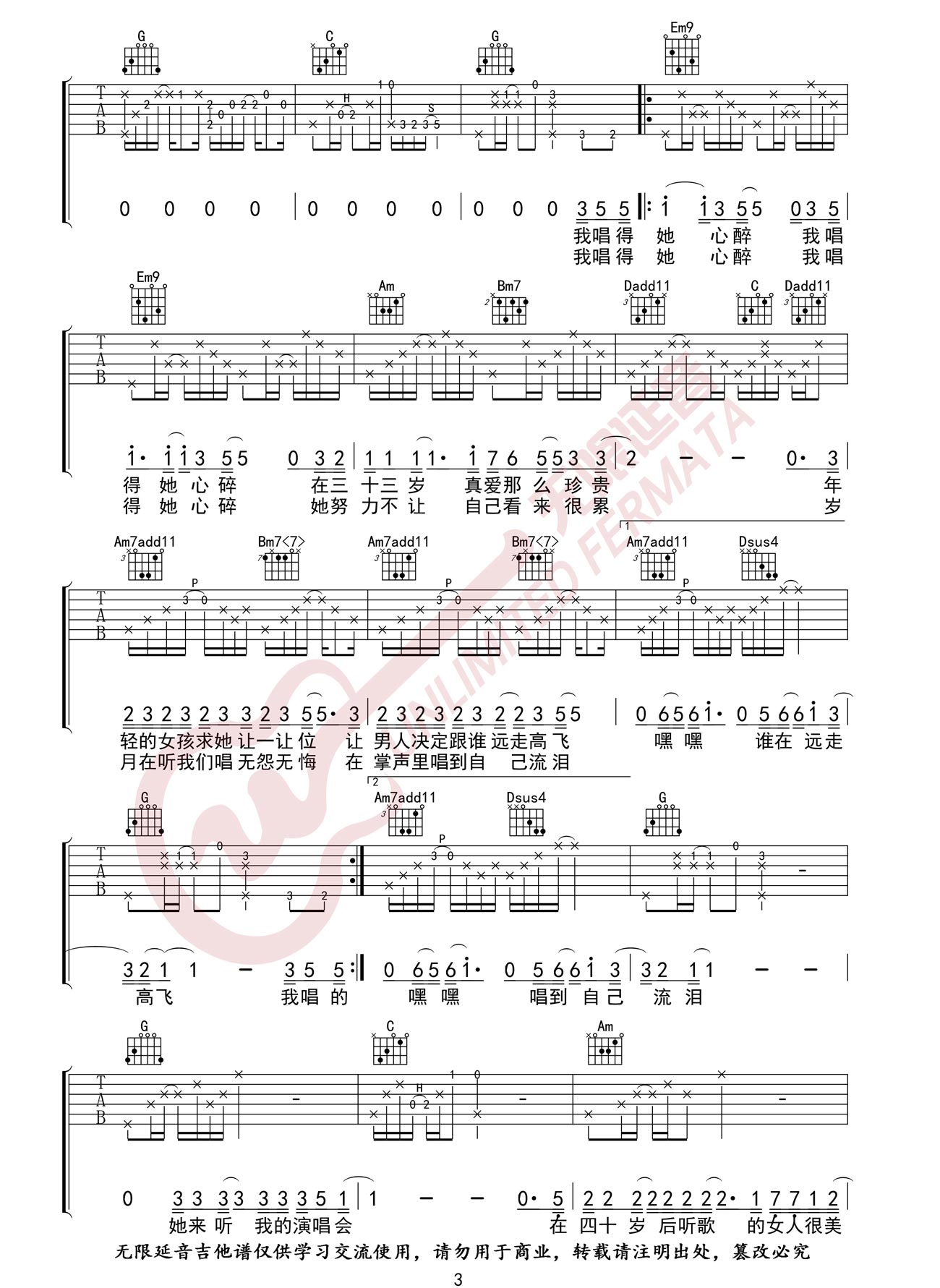 《张学友《她来听我的演唱会吉他谱》(C调)》内容来自于互联网,不能保证内容的准确性与完整性,仅供学习交流欣赏,请勿用于其它用途,内容版权归原作者及来源网站所有,如有侵犯到您的权益请来信告知,我们将及时删除。