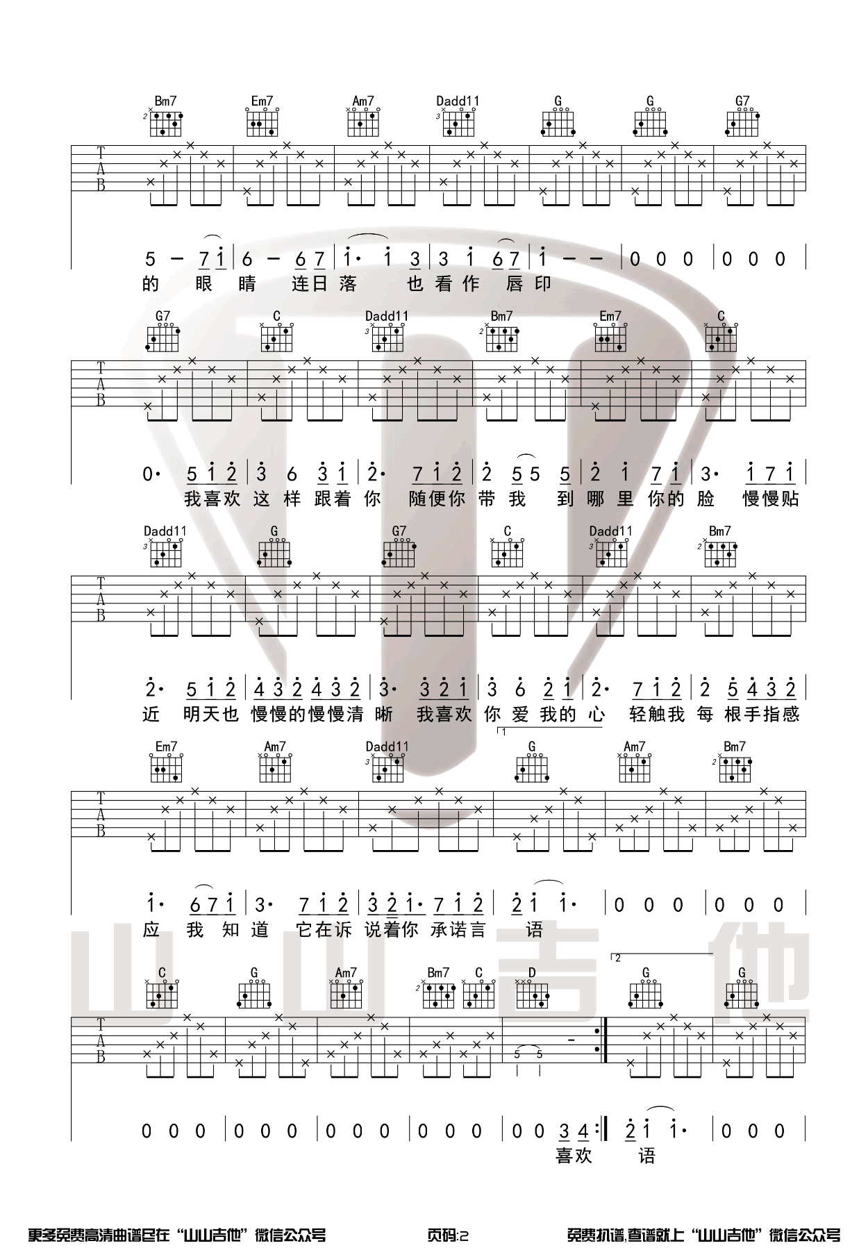 《陈洁仪《喜欢你吉他谱》(A调)》内容来自于互联网,不能保证内容的准确性与完整性,仅供学习交流欣赏,请勿用于其它用途,内容版权归原作者及来源网站所有,如有侵犯到您的权益请来信告知,我们将及时删除。