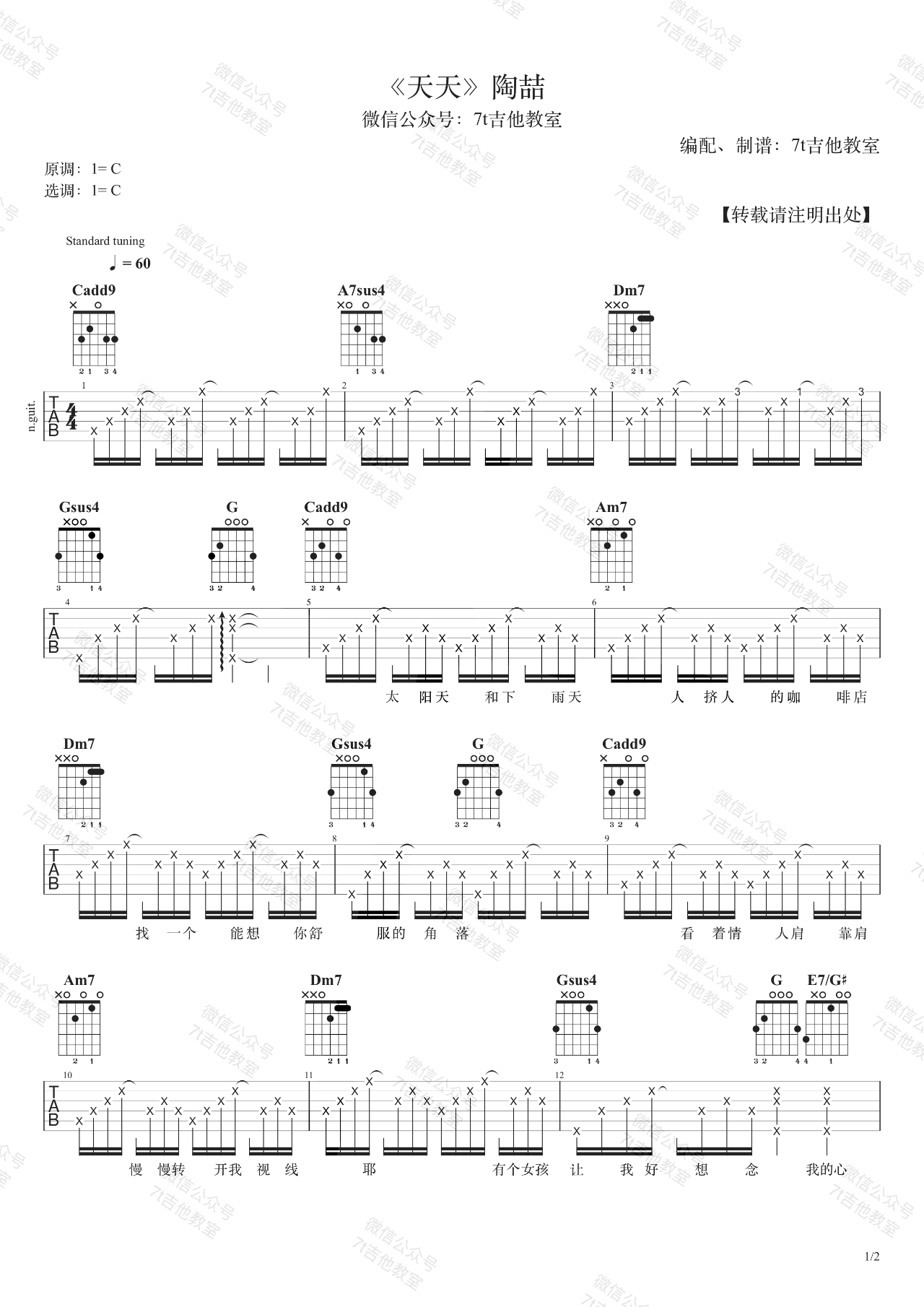 《陶喆《天天吉他谱》(G调)》内容来自于互联网,不能保证内容的准确性与完整性,仅供学习交流欣赏,请勿用于其它用途,内容版权归原作者及来源网站所有,如有侵犯到您的权益请来信告知,我们将及时删除。