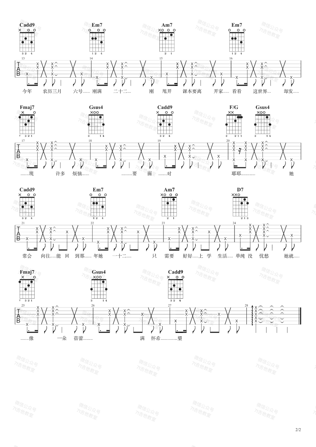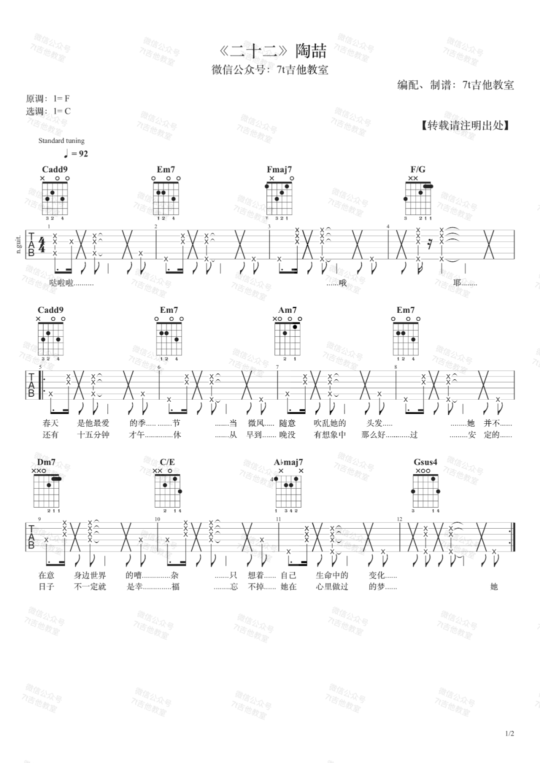 《陶喆《二十二吉他谱》(C调)》内容来自于互联网,不能保证内容的准确性与完整性,仅供学习交流欣赏,请勿用于其它用途,内容版权归原作者及来源网站所有,如有侵犯到您的权益请来信告知,我们将及时删除。