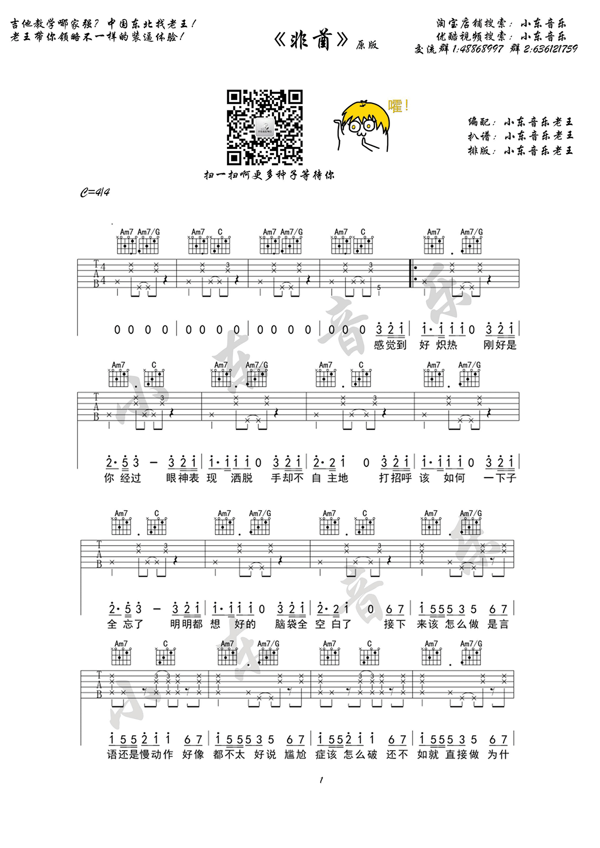 《薛明媛/朱贺《非酋吉他谱》(C调)》内容来自于互联网,不能保证内容的准确性与完整性,仅供学习交流欣赏,请勿用于其它用途,内容版权归原作者及来源网站所有,如有侵犯到您的权益请来信告知,我们将及时删除。