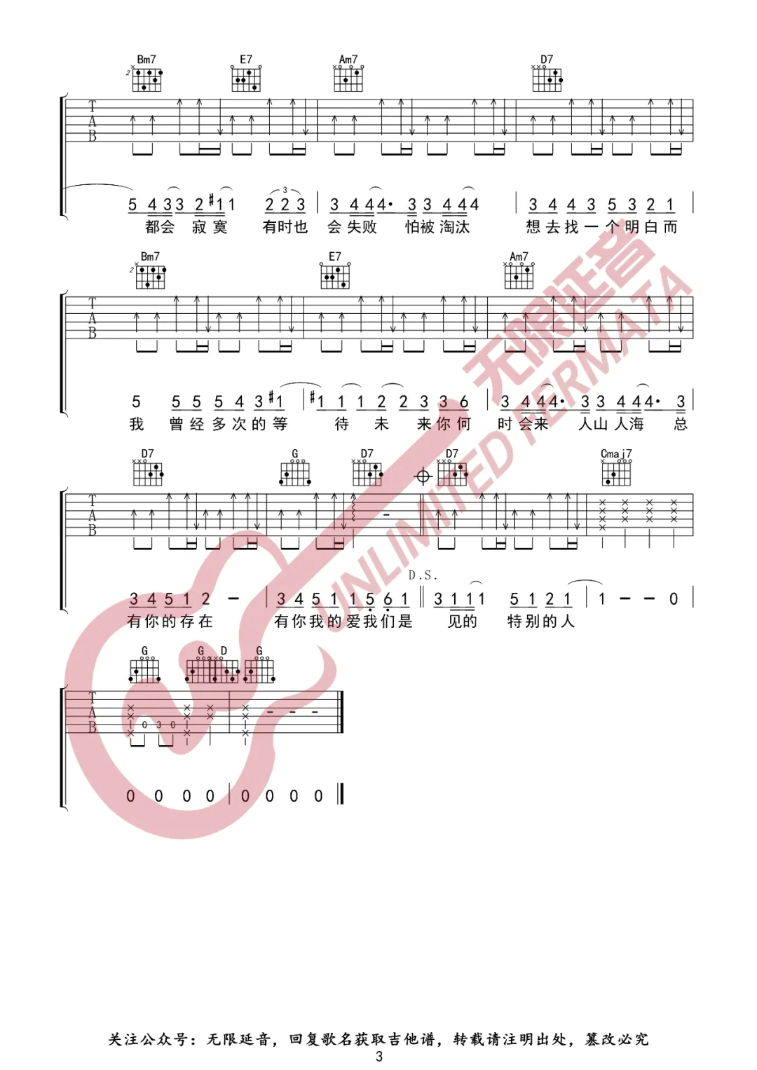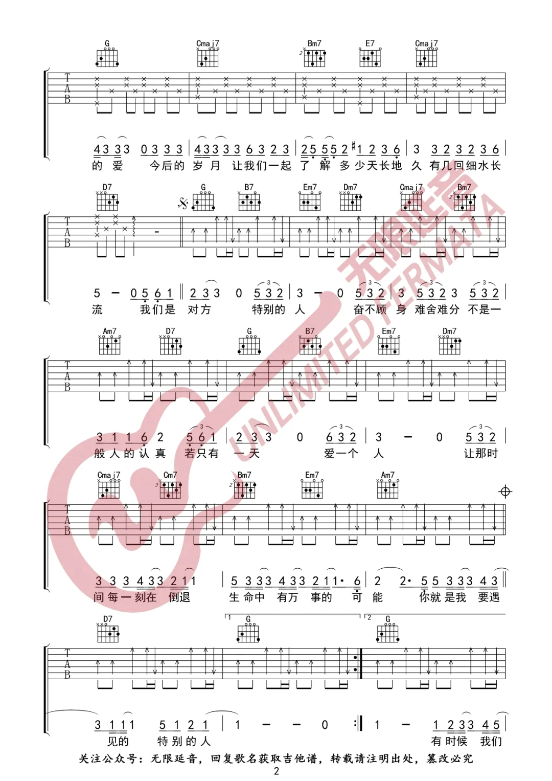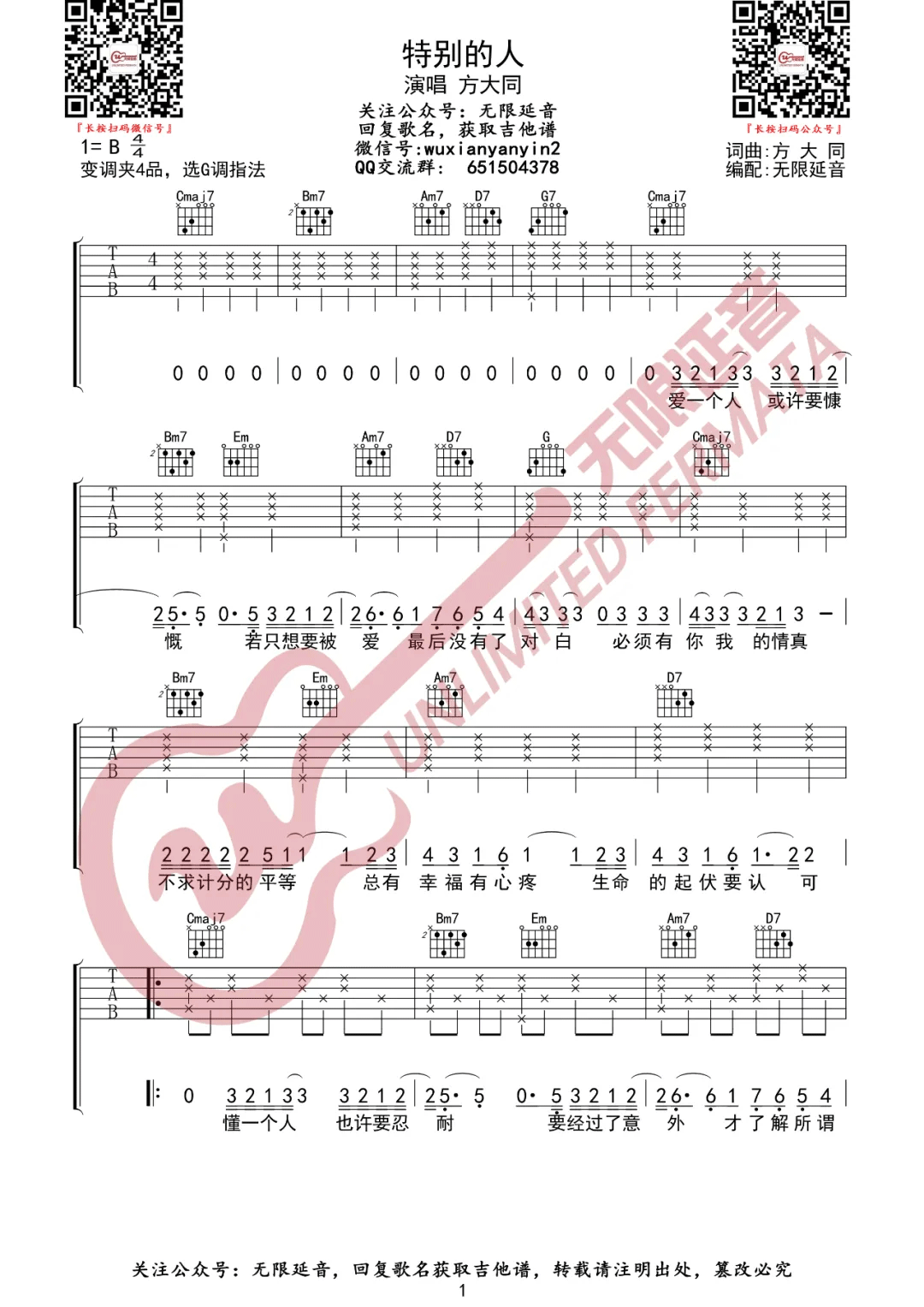 《方大同《特别的人吉他谱》(C调)》内容来自于互联网,不能保证内容的准确性与完整性,仅供学习交流欣赏,请勿用于其它用途,内容版权归原作者及来源网站所有,如有侵犯到您的权益请来信告知,我们将及时删除。