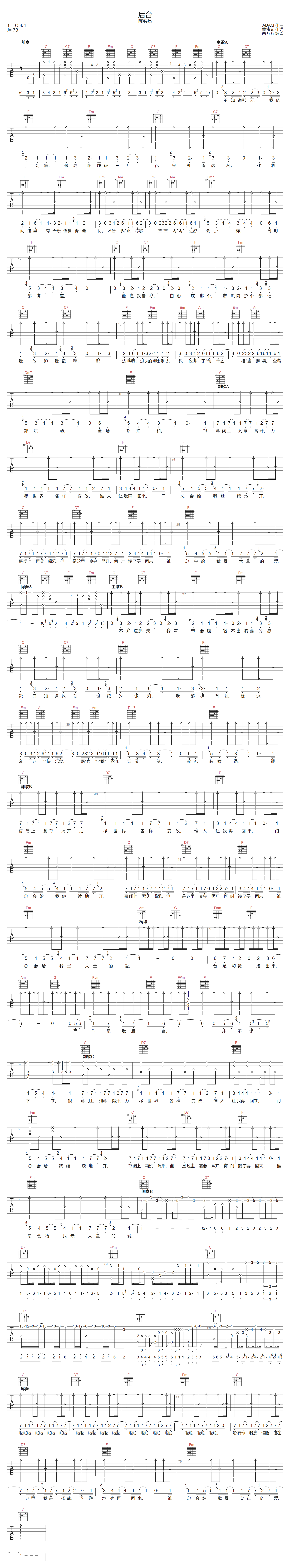 《陈奕迅《后台吉他谱》(G调)》内容来自于互联网,不能保证内容的准确性与完整性,仅供学习交流欣赏,请勿用于其它用途,内容版权归原作者及来源网站所有,如有侵犯到您的权益请来信告知,我们将及时删除。