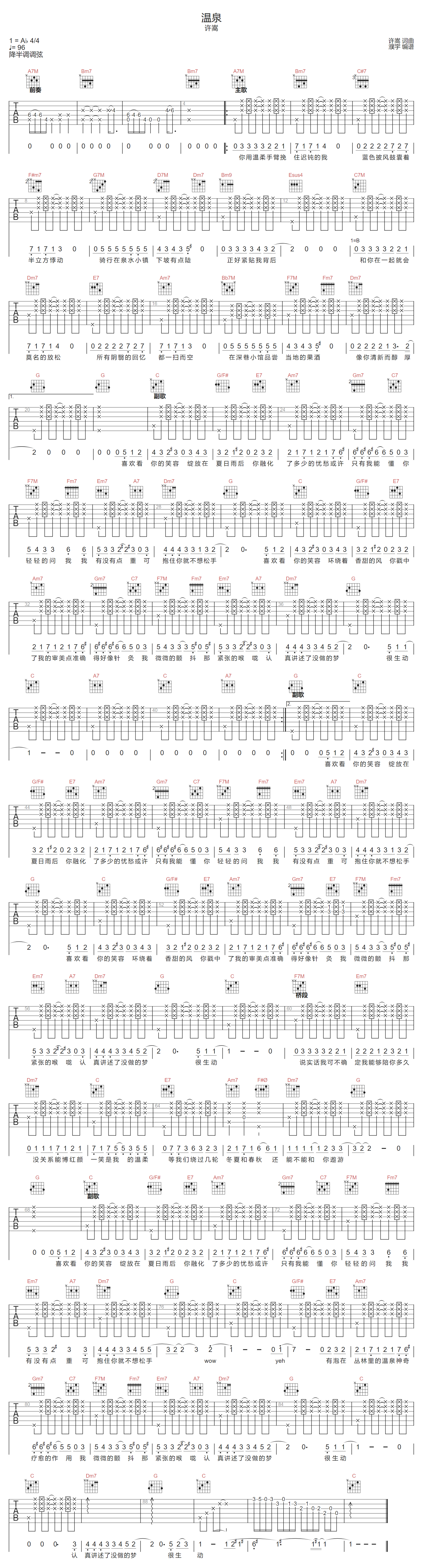 《许嵩《温泉吉他谱》(G调)》内容来自于互联网,不能保证内容的准确性与完整性,仅供学习交流欣赏,请勿用于其它用途,内容版权归原作者及来源网站所有,如有侵犯到您的权益请来信告知,我们将及时删除。