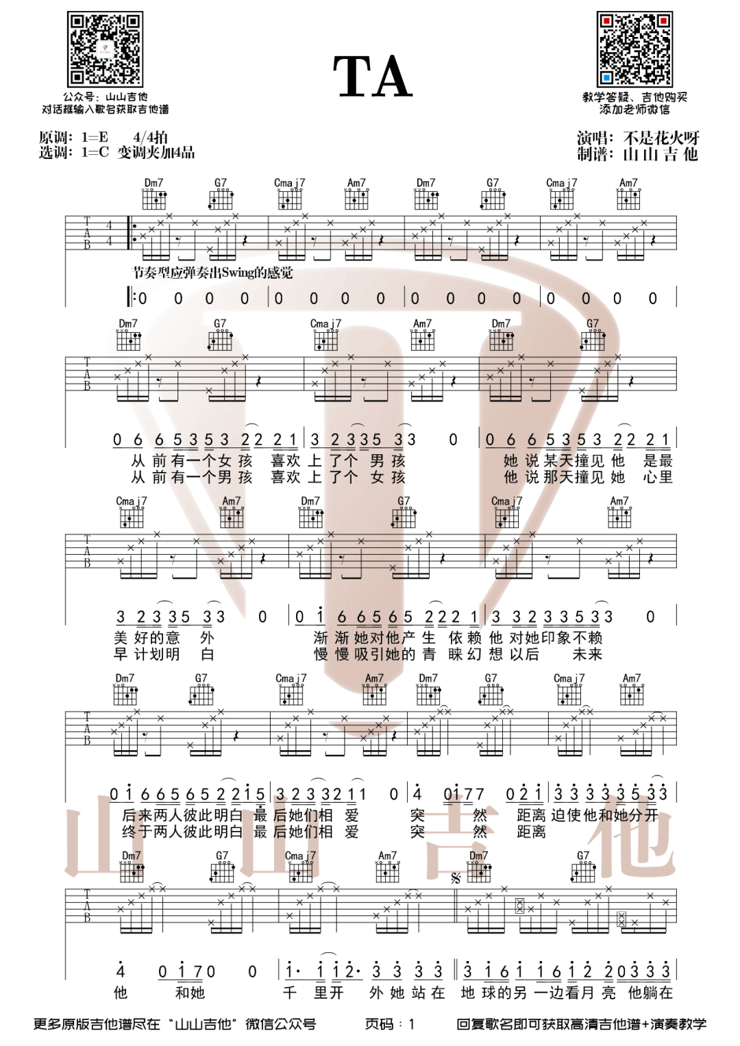 《不是花火呀《TA吉他谱》(C调)》内容来自于互联网,不能保证内容的准确性与完整性,仅供学习交流欣赏,请勿用于其它用途,内容版权归原作者及来源网站所有,如有侵犯到您的权益请来信告知,我们将及时删除。