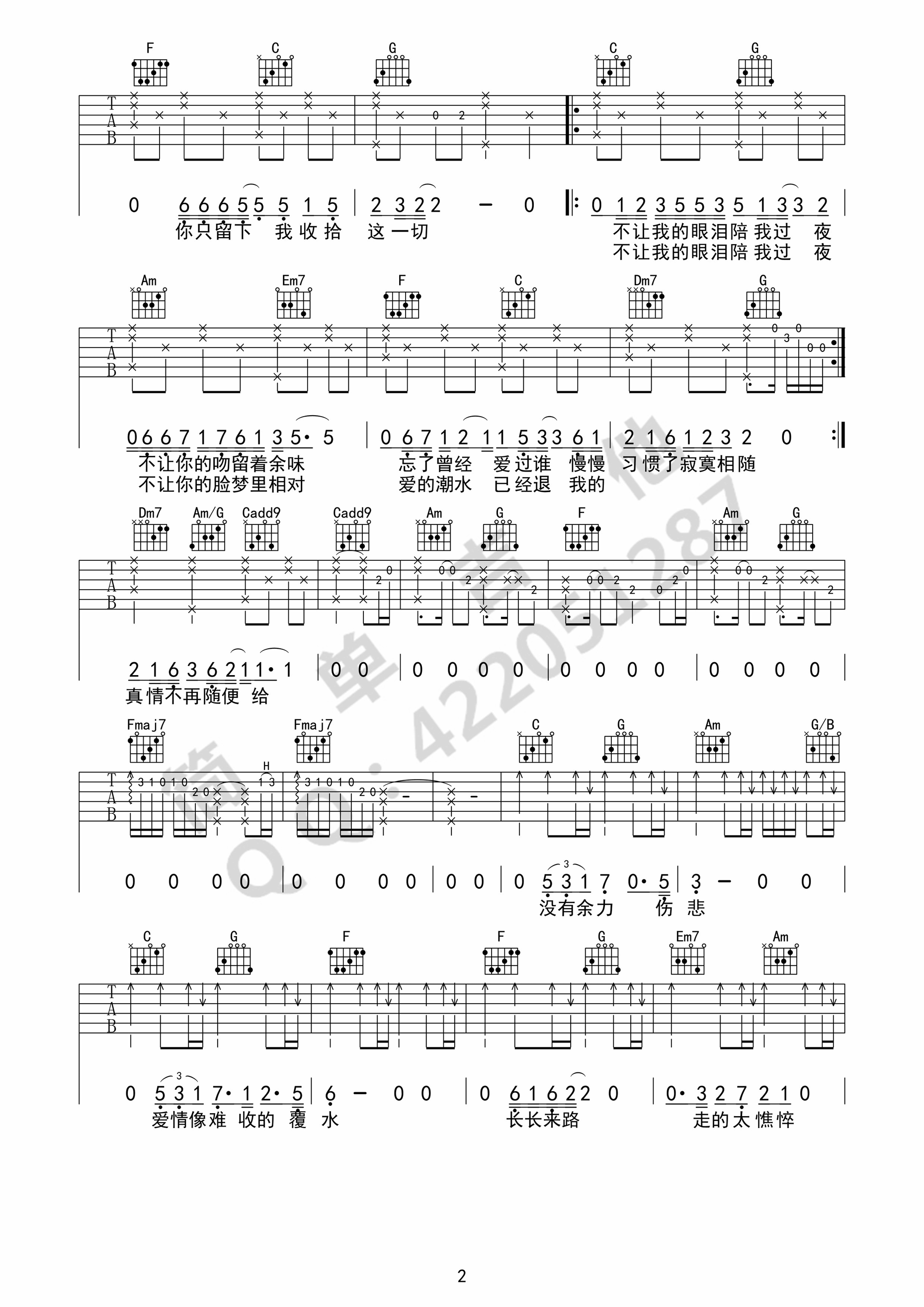《齐秦《不让我的眼泪陪我过夜吉他谱》(C调)》内容来自于互联网,不能保证内容的准确性与完整性,仅供学习交流欣赏,请勿用于其它用途,内容版权归原作者及来源网站所有,如有侵犯到您的权益请来信告知,我们将及时删除。