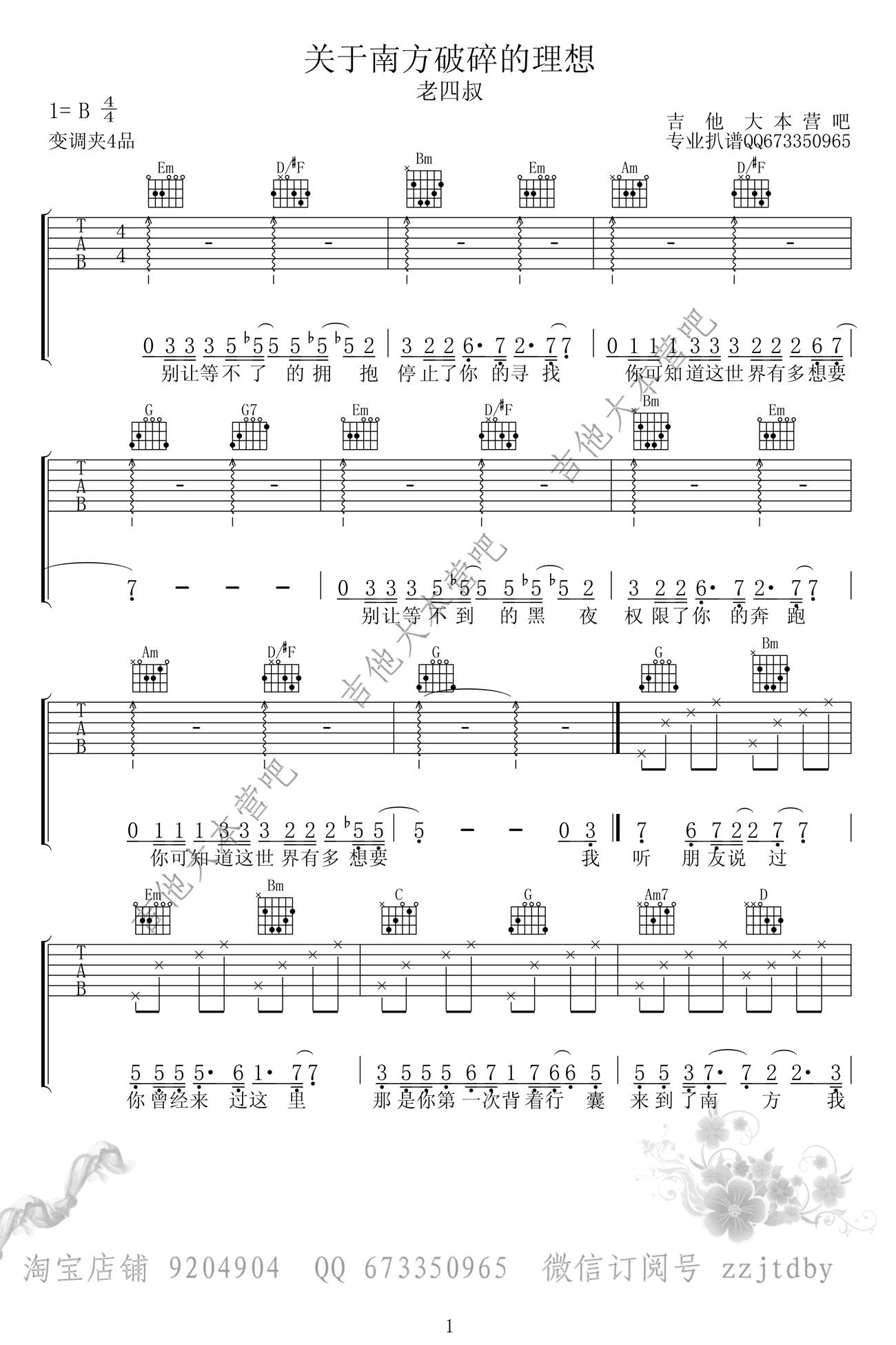 《老四叔《关于南方破碎的理想吉他谱》(C调)》内容来自于互联网,不能保证内容的准确性与完整性,仅供学习交流欣赏,请勿用于其它用途,内容版权归原作者及来源网站所有,如有侵犯到您的权益请来信告知,我们将及时删除。