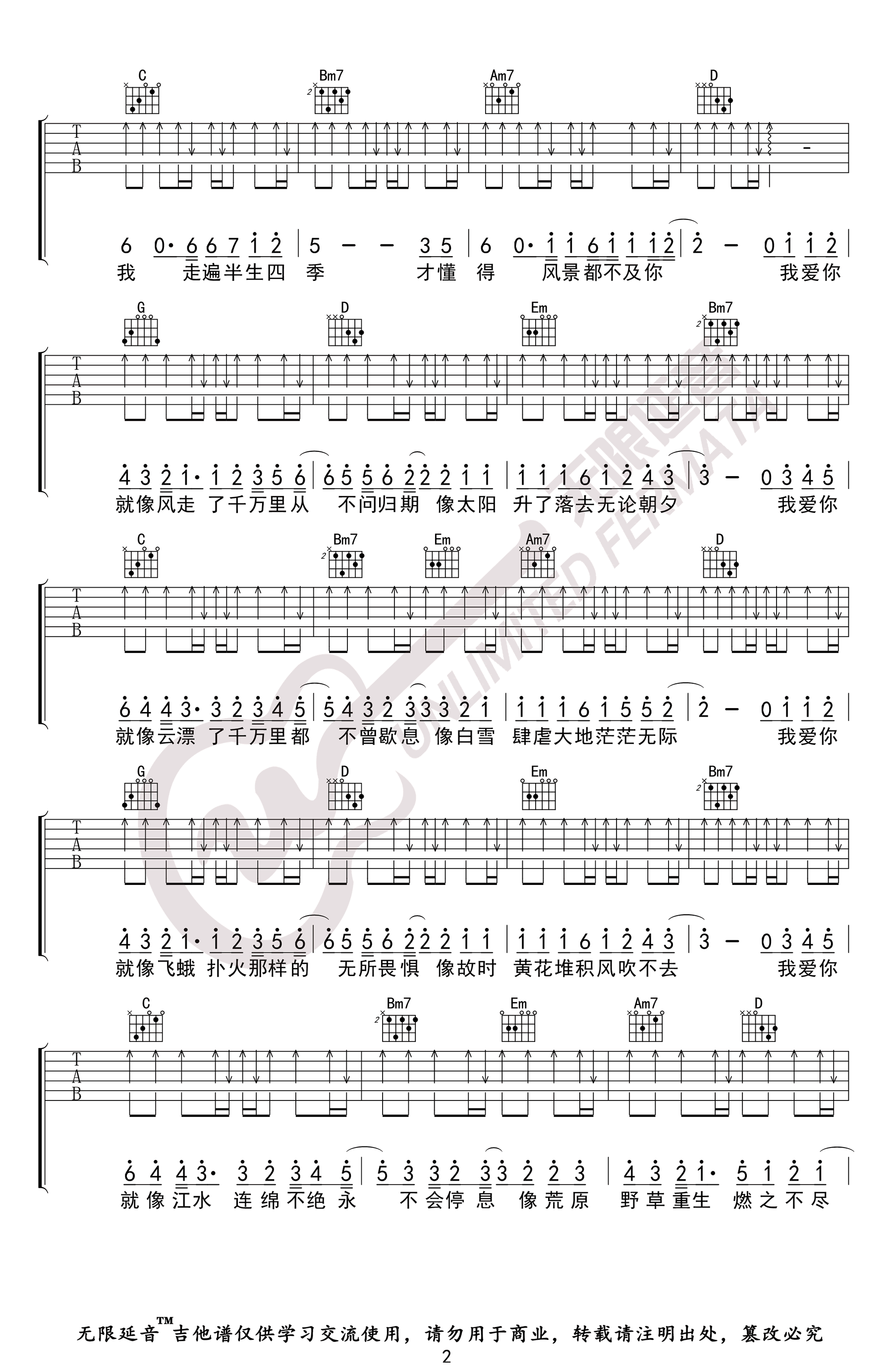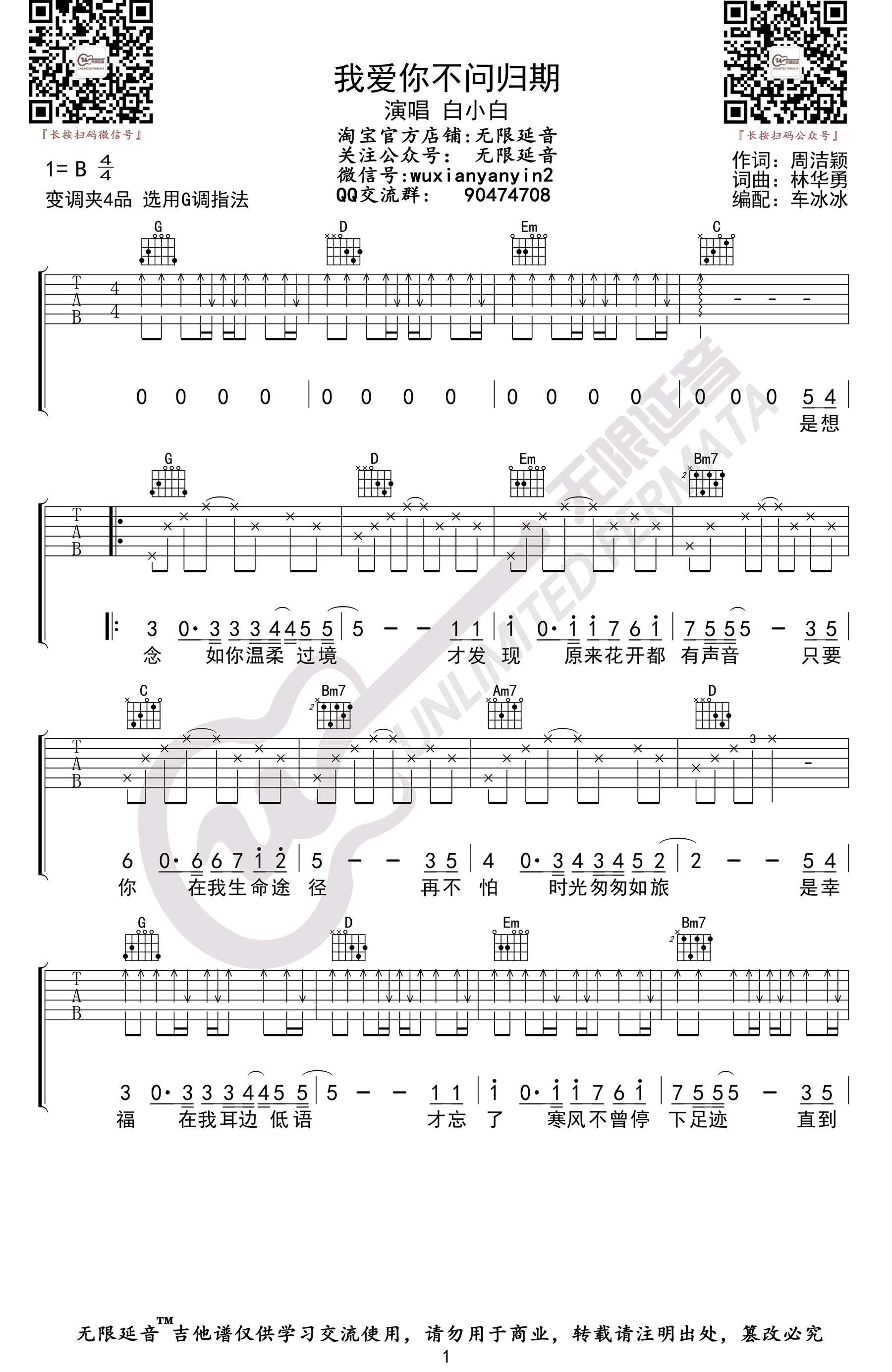 《白小白《我爱你不问归期吉他谱》(G调)》内容来自于互联网,不能保证内容的准确性与完整性,仅供学习交流欣赏,请勿用于其它用途,内容版权归原作者及来源网站所有,如有侵犯到您的权益请来信告知,我们将及时删除。
