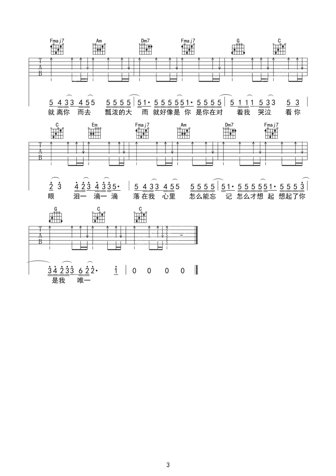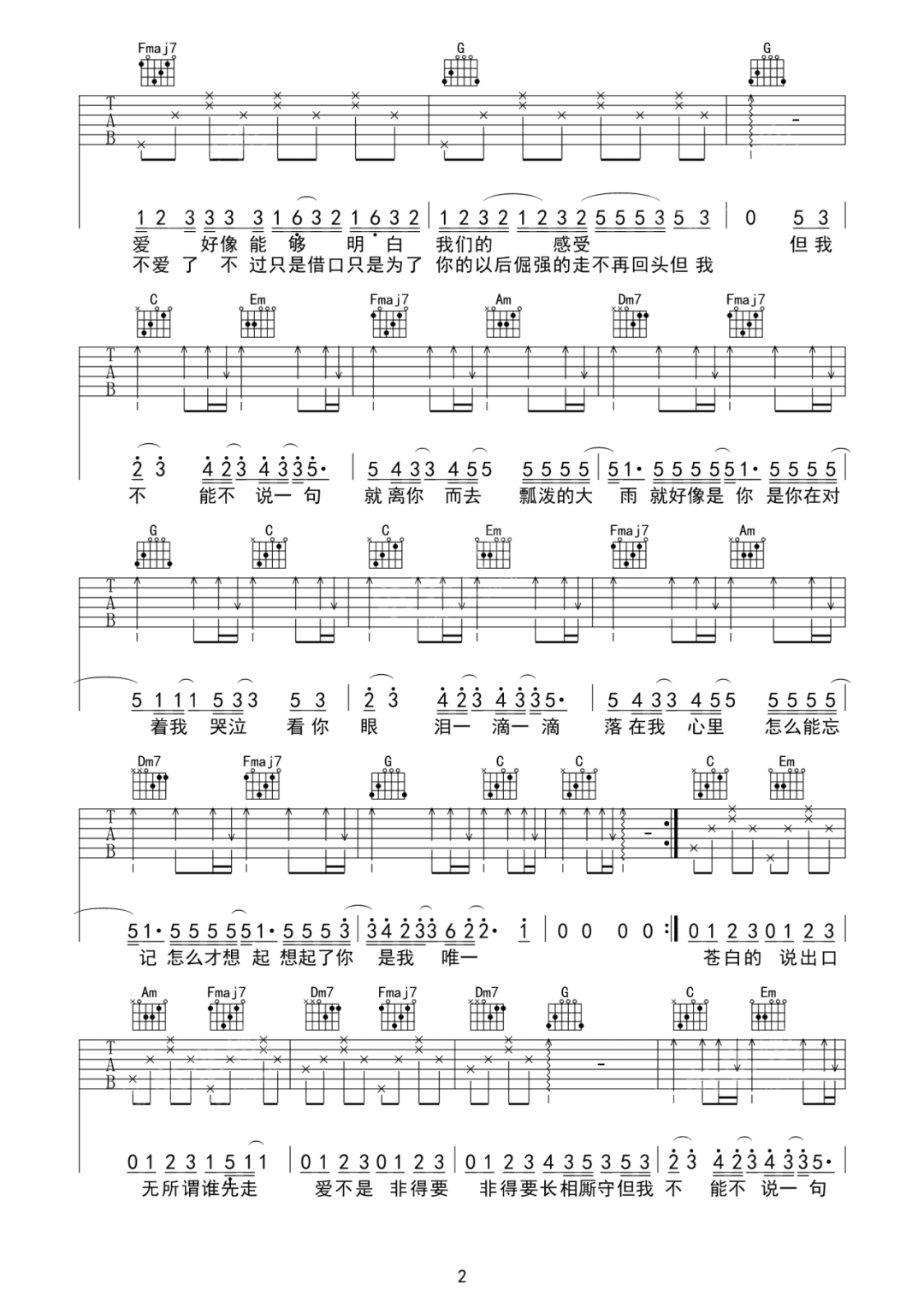 队长《可能吉他谱》(C调)