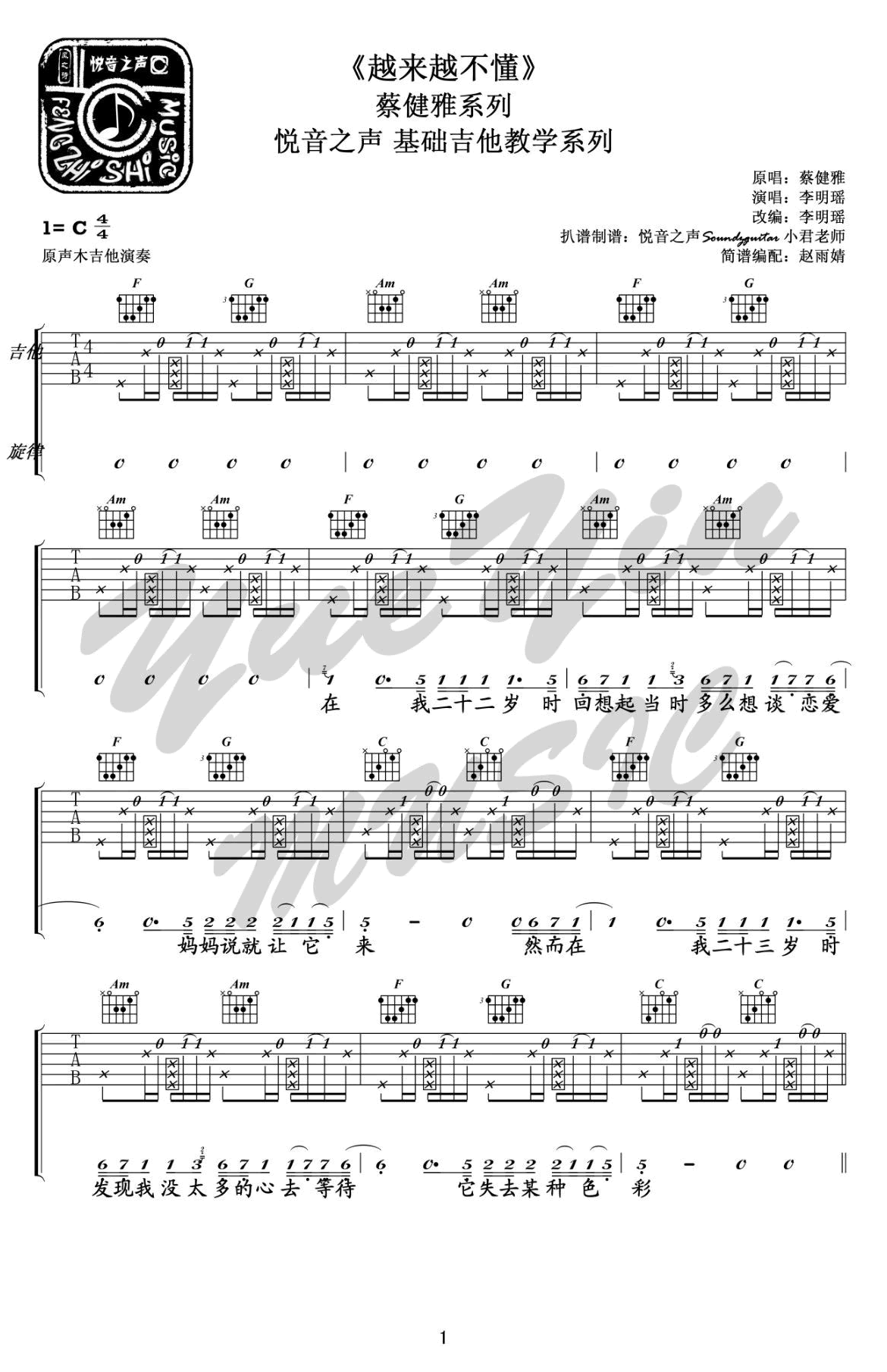 《蔡健雅《越来越不懂吉他谱》(G调)》内容来自于互联网,不能保证内容的准确性与完整性,仅供学习交流欣赏,请勿用于其它用途,内容版权归原作者及来源网站所有,如有侵犯到您的权益请来信告知,我们将及时删除。