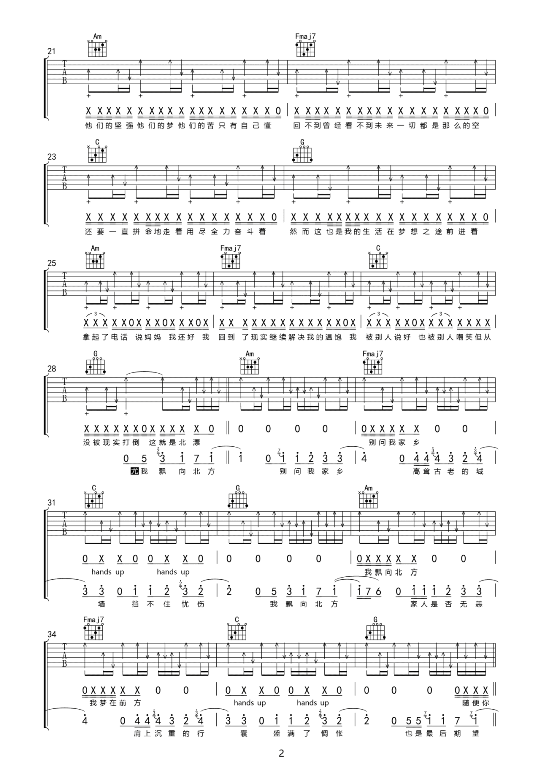 《尤长靖/那吾克热《飘向北方吉他谱》(C调)》内容来自于互联网,不能保证内容的准确性与完整性,仅供学习交流欣赏,请勿用于其它用途,内容版权归原作者及来源网站所有,如有侵犯到您的权益请来信告知,我们将及时删除。