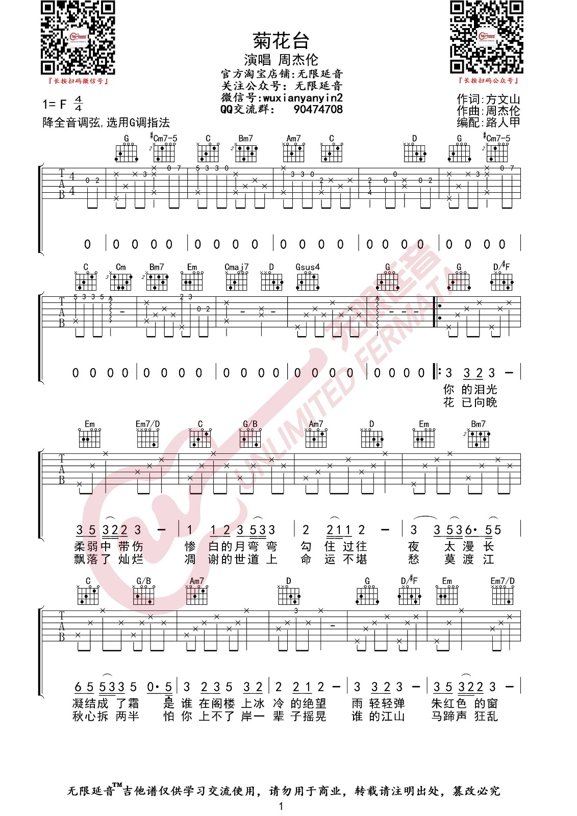 《周杰伦《菊花台吉他谱》(C调)》内容来自于互联网,不能保证内容的准确性与完整性,仅供学习交流欣赏,请勿用于其它用途,内容版权归原作者及来源网站所有,如有侵犯到您的权益请来信告知,我们将及时删除。