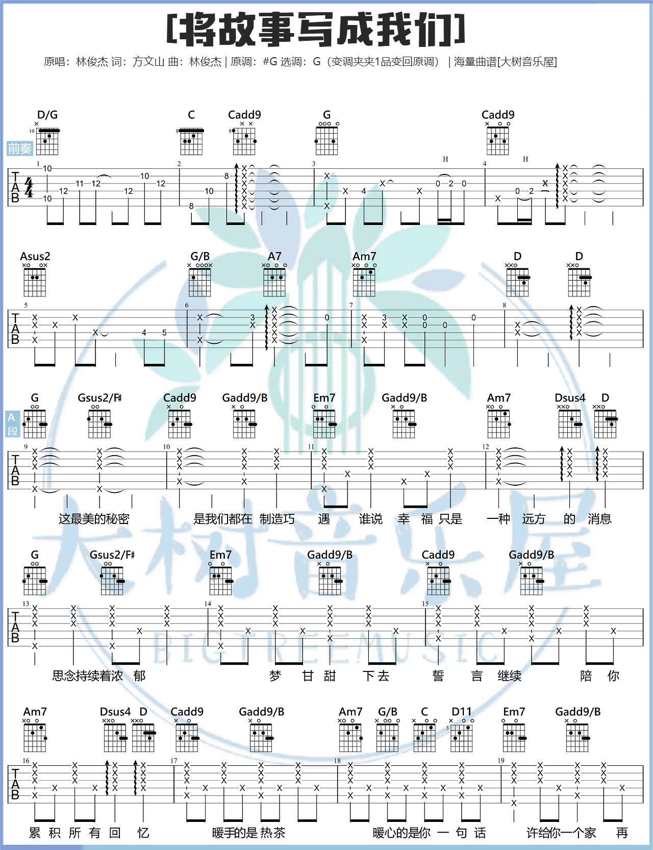 林俊杰《将故事写成我们吉他谱》(G调)