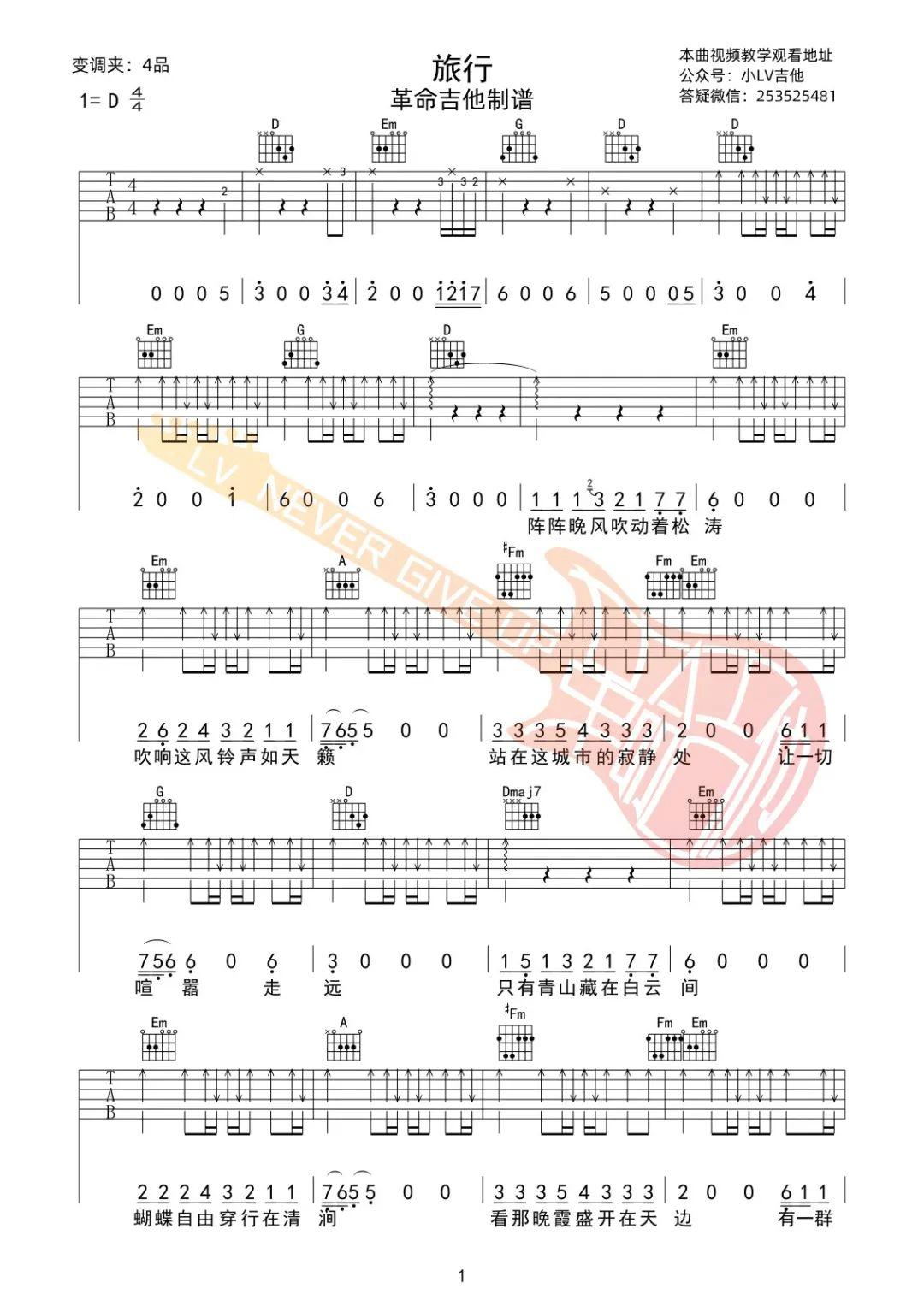 《许巍《旅行吉他谱》》内容来自于互联网,不能保证内容的准确性与完整性,仅供学习交流欣赏,请勿用于其它用途,内容版权归原作者及来源网站所有,如有侵犯到您的权益请来信告知,我们将及时删除。