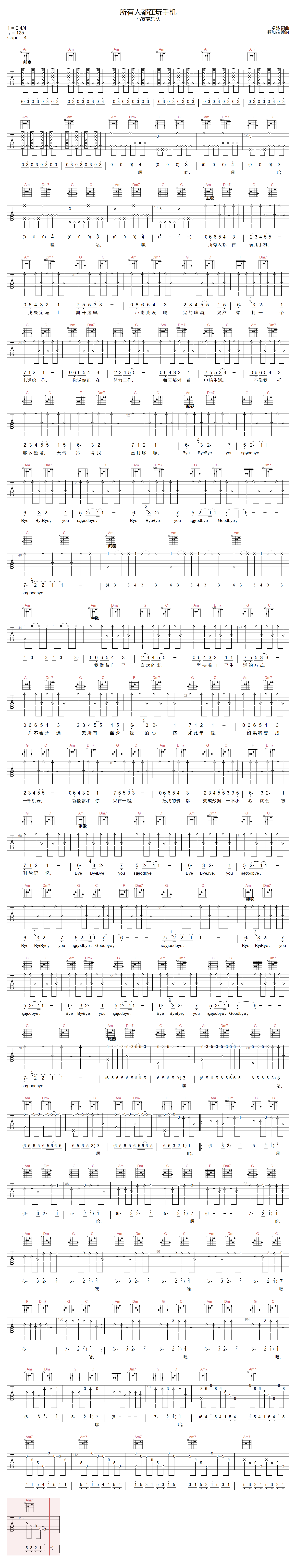 《马赛克乐队《所有人都在玩手机吉他谱》(C调)》内容来自于互联网,不能保证内容的准确性与完整性,仅供学习交流欣赏,请勿用于其它用途,内容版权归原作者及来源网站所有,如有侵犯到您的权益请来信告知,我们将及时删除。