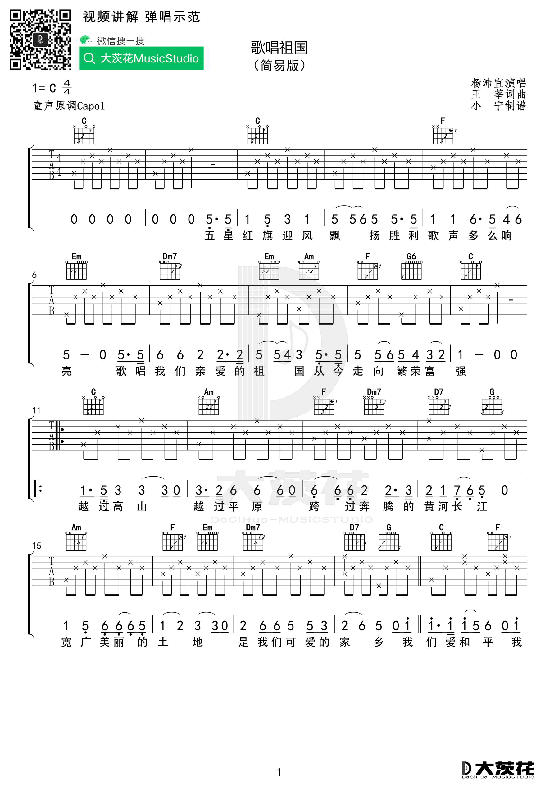 《杨沛宜《歌唱祖国吉他谱》(G调)》内容来自于互联网,不能保证内容的准确性与完整性,仅供学习交流欣赏,请勿用于其它用途,内容版权归原作者及来源网站所有,如有侵犯到您的权益请来信告知,我们将及时删除。