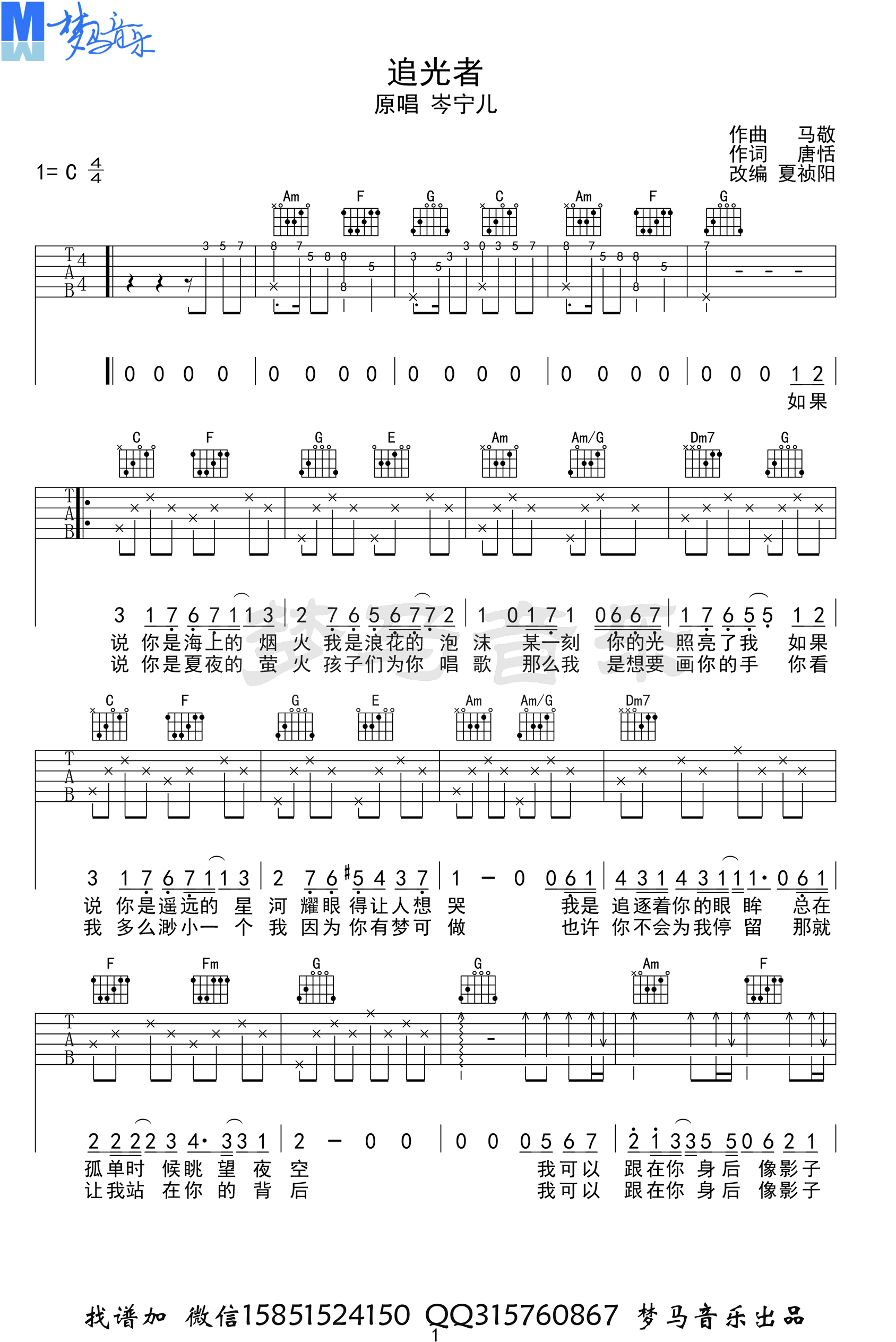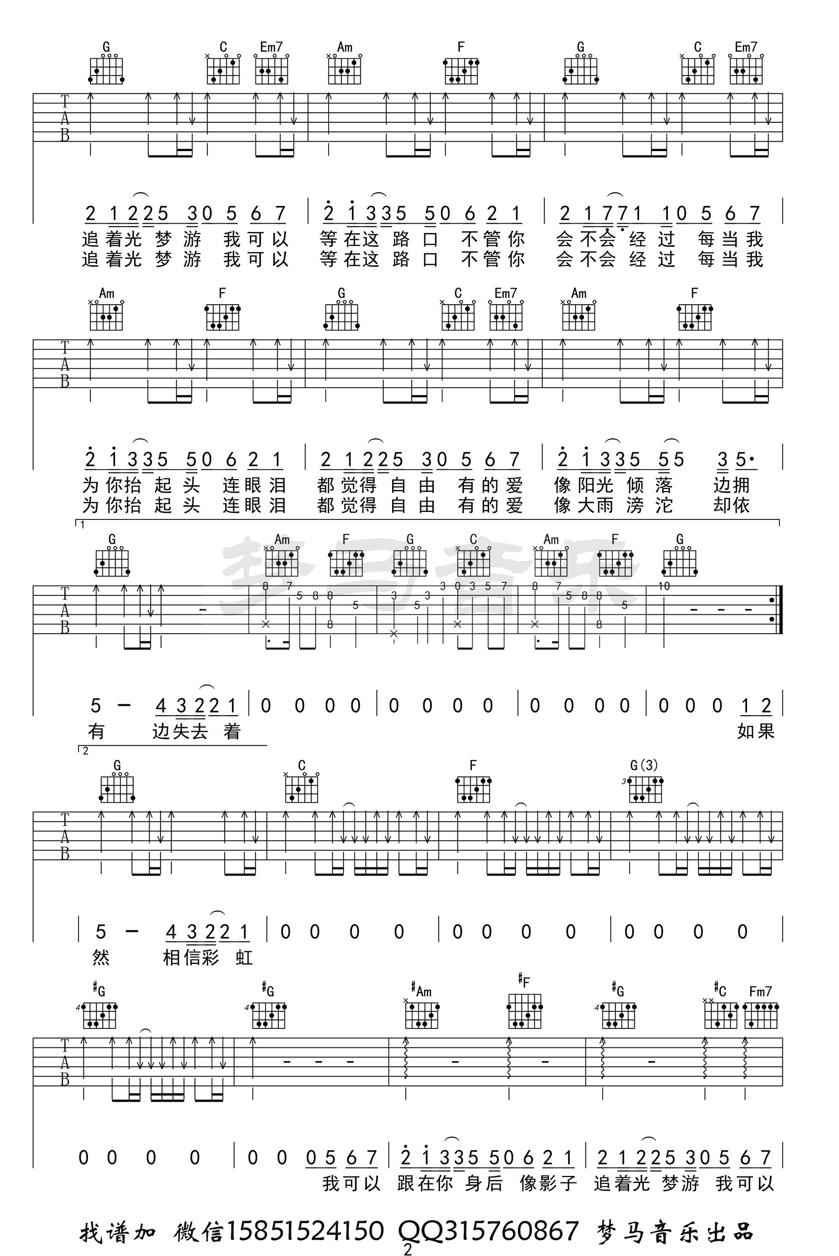 《岑宁儿《追光者吉他谱》(G调)》内容来自于互联网,不能保证内容的准确性与完整性,仅供学习交流欣赏,请勿用于其它用途,内容版权归原作者及来源网站所有,如有侵犯到您的权益请来信告知,我们将及时删除。