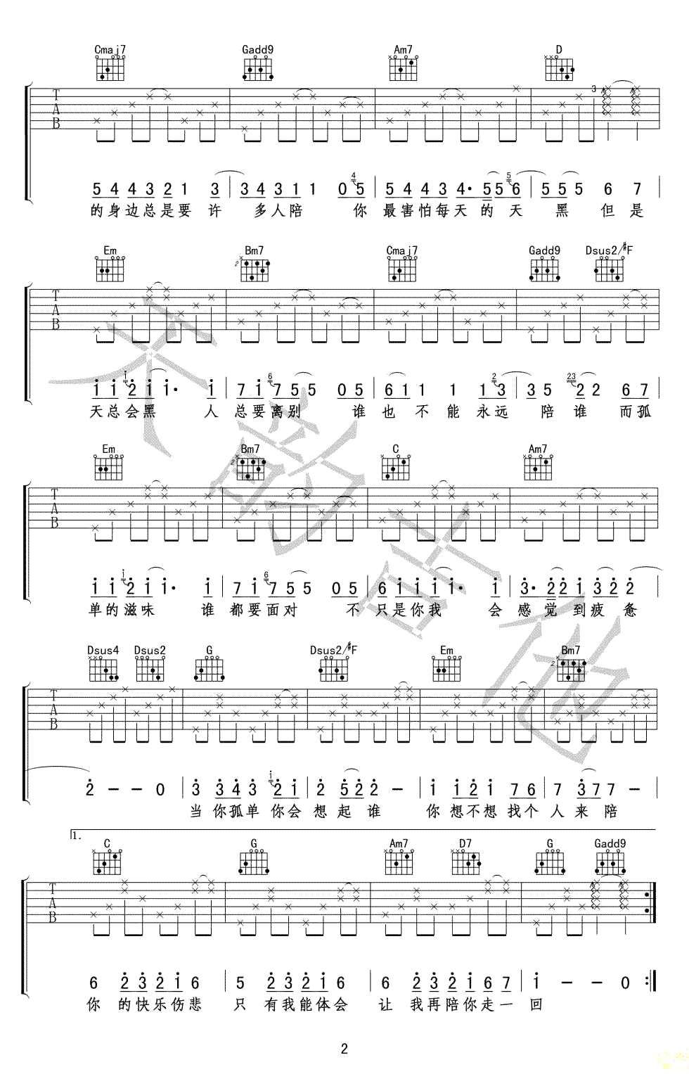 《张栋梁《当你孤单你会想起谁吉他谱》(C调)》内容来自于互联网,不能保证内容的准确性与完整性,仅供学习交流欣赏,请勿用于其它用途,内容版权归原作者及来源网站所有,如有侵犯到您的权益请来信告知,我们将及时删除。