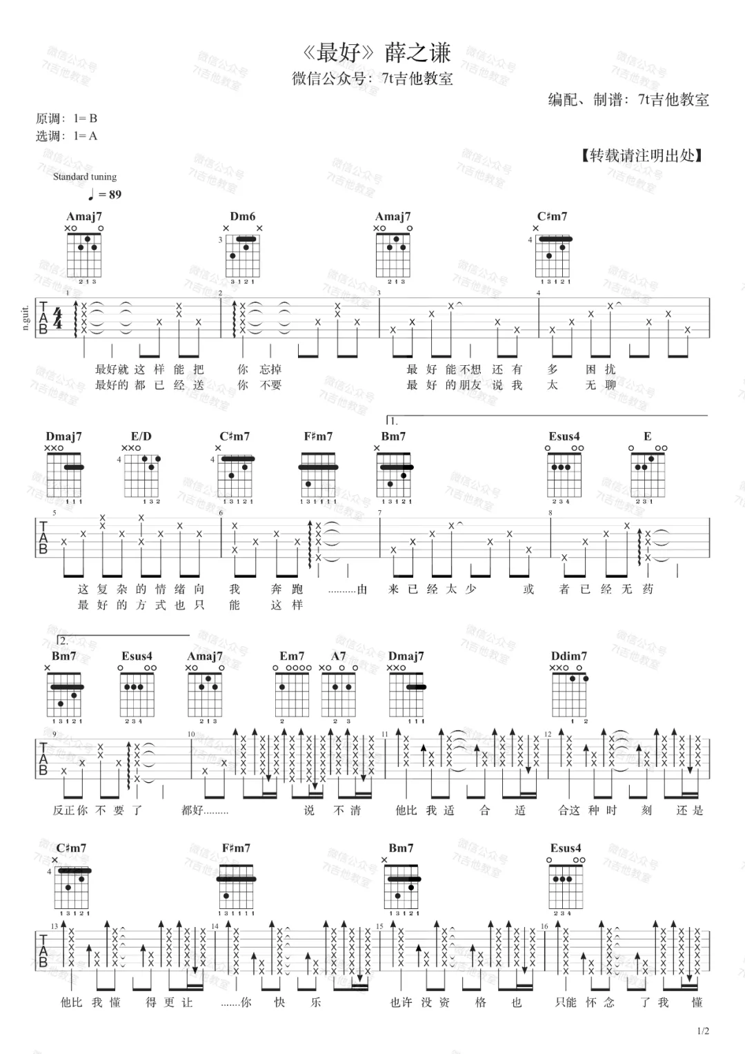 《薛之谦《最好吉他谱》(C调)》内容来自于互联网,不能保证内容的准确性与完整性,仅供学习交流欣赏,请勿用于其它用途,内容版权归原作者及来源网站所有,如有侵犯到您的权益请来信告知,我们将及时删除。