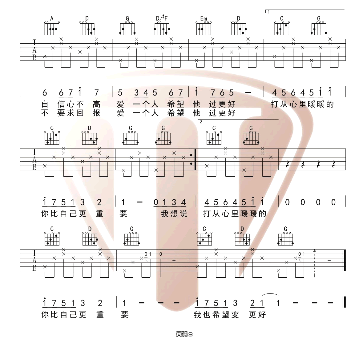 《梁静茹《暖暖吉他谱》(C调)》内容来自于互联网,不能保证内容的准确性与完整性,仅供学习交流欣赏,请勿用于其它用途,内容版权归原作者及来源网站所有,如有侵犯到您的权益请来信告知,我们将及时删除。