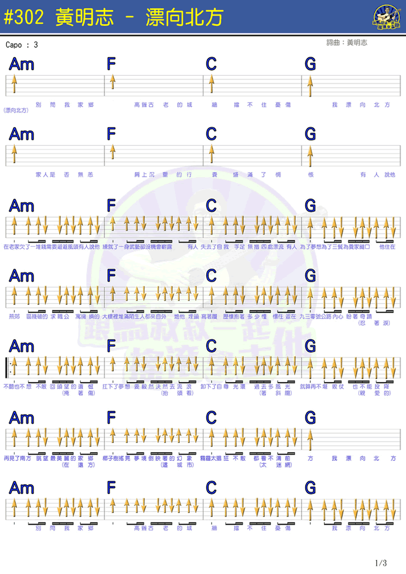 《黄明志/王力宏《飘向北方吉他谱》(G调)》内容来自于互联网,不能保证内容的准确性与完整性,仅供学习交流欣赏,请勿用于其它用途,内容版权归原作者及来源网站所有,如有侵犯到您的权益请来信告知,我们将及时删除。