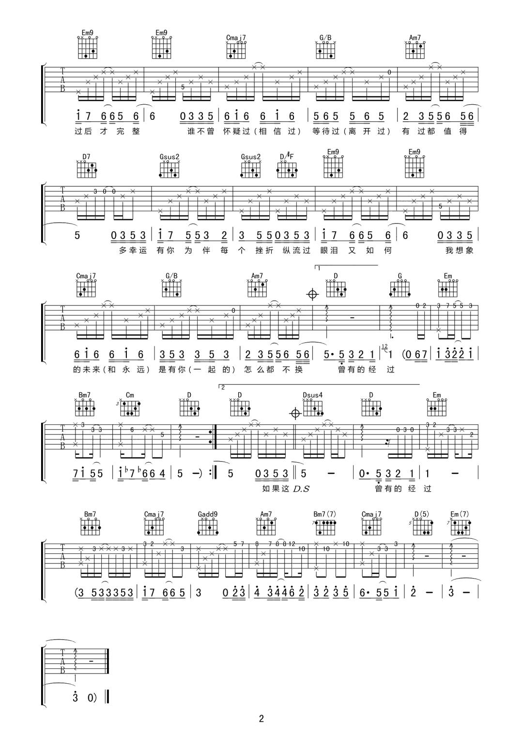 《陈楚生/何洁《经过吉他谱》(G调)》内容来自于互联网,不能保证内容的准确性与完整性,仅供学习交流欣赏,请勿用于其它用途,内容版权归原作者及来源网站所有,如有侵犯到您的权益请来信告知,我们将及时删除。
