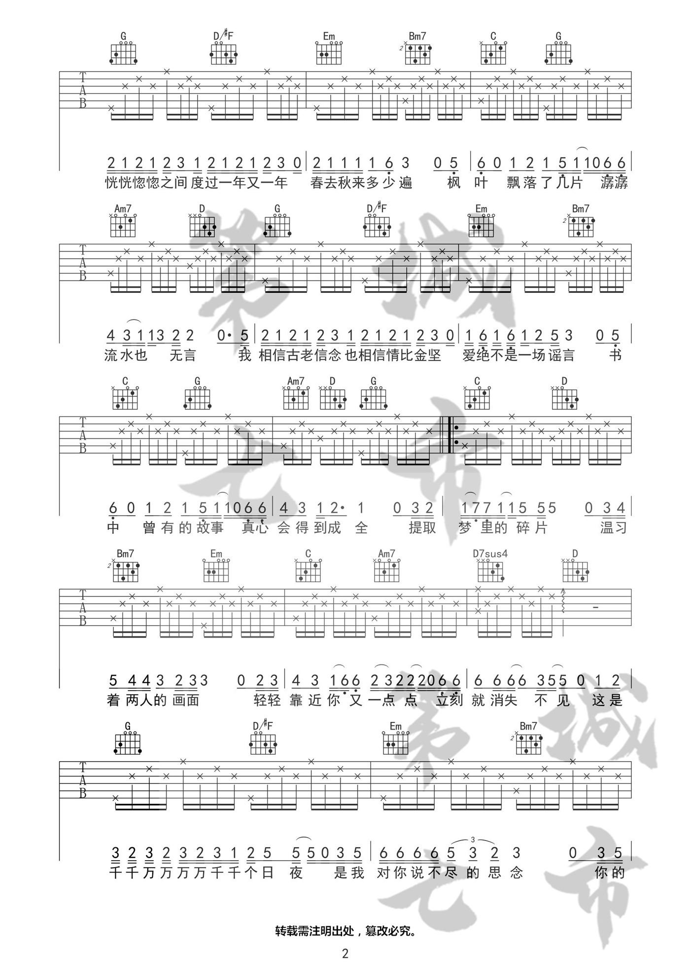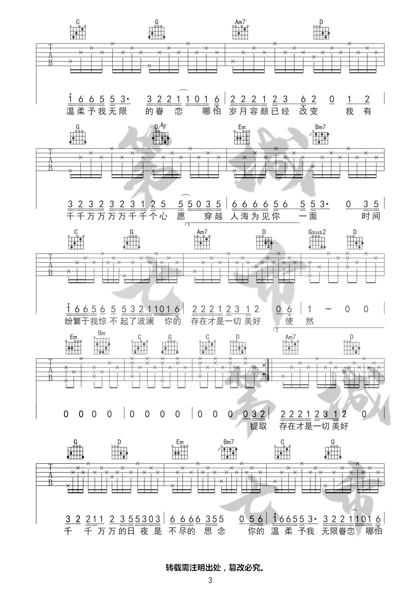 《深海鱼子酱《千千万万吉他谱》(C调)》内容来自于互联网,不能保证内容的准确性与完整性,仅供学习交流欣赏,请勿用于其它用途,内容版权归原作者及来源网站所有,如有侵犯到您的权益请来信告知,我们将及时删除。