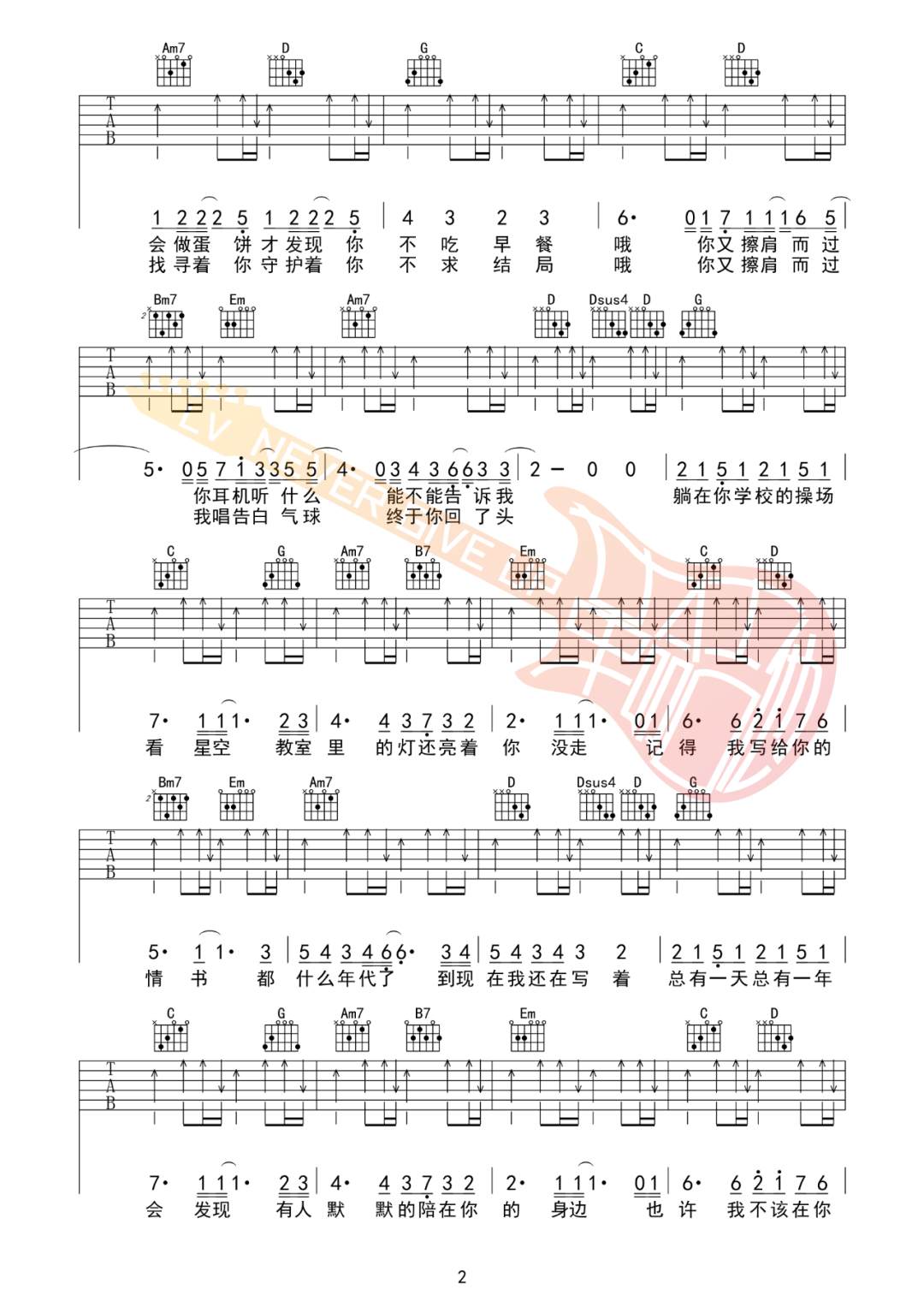 《周杰伦《等你下课吉他谱》(A调)》内容来自于互联网,不能保证内容的准确性与完整性,仅供学习交流欣赏,请勿用于其它用途,内容版权归原作者及来源网站所有,如有侵犯到您的权益请来信告知,我们将及时删除。