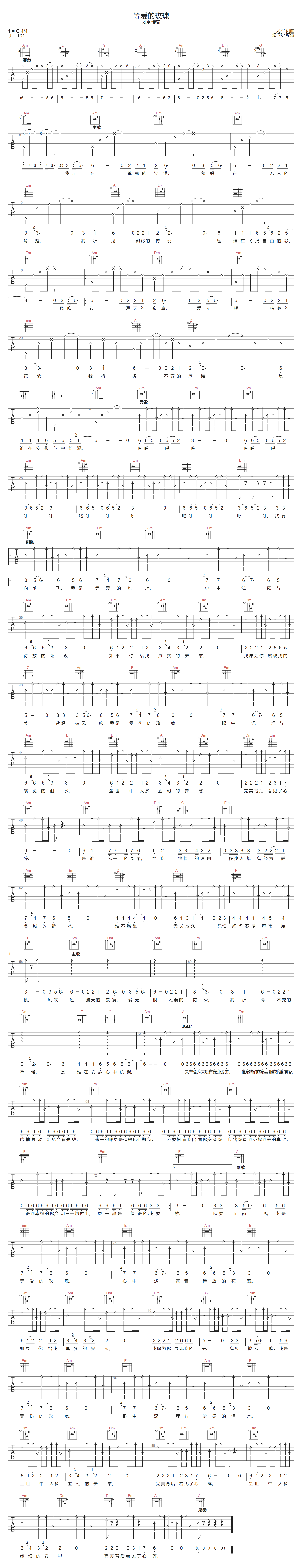 《凤凰传奇《等爱的玫瑰吉他谱》(C调)》内容来自于互联网,不能保证内容的准确性与完整性,仅供学习交流欣赏,请勿用于其它用途,内容版权归原作者及来源网站所有,如有侵犯到您的权益请来信告知,我们将及时删除。
