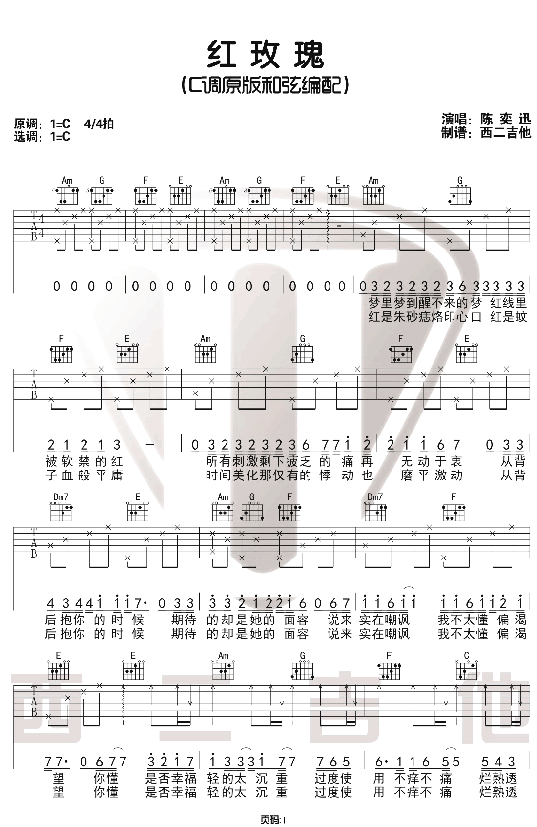 《陈奕迅《红玫瑰吉他谱》(G调)》内容来自于互联网,不能保证内容的准确性与完整性,仅供学习交流欣赏,请勿用于其它用途,内容版权归原作者及来源网站所有,如有侵犯到您的权益请来信告知,我们将及时删除。