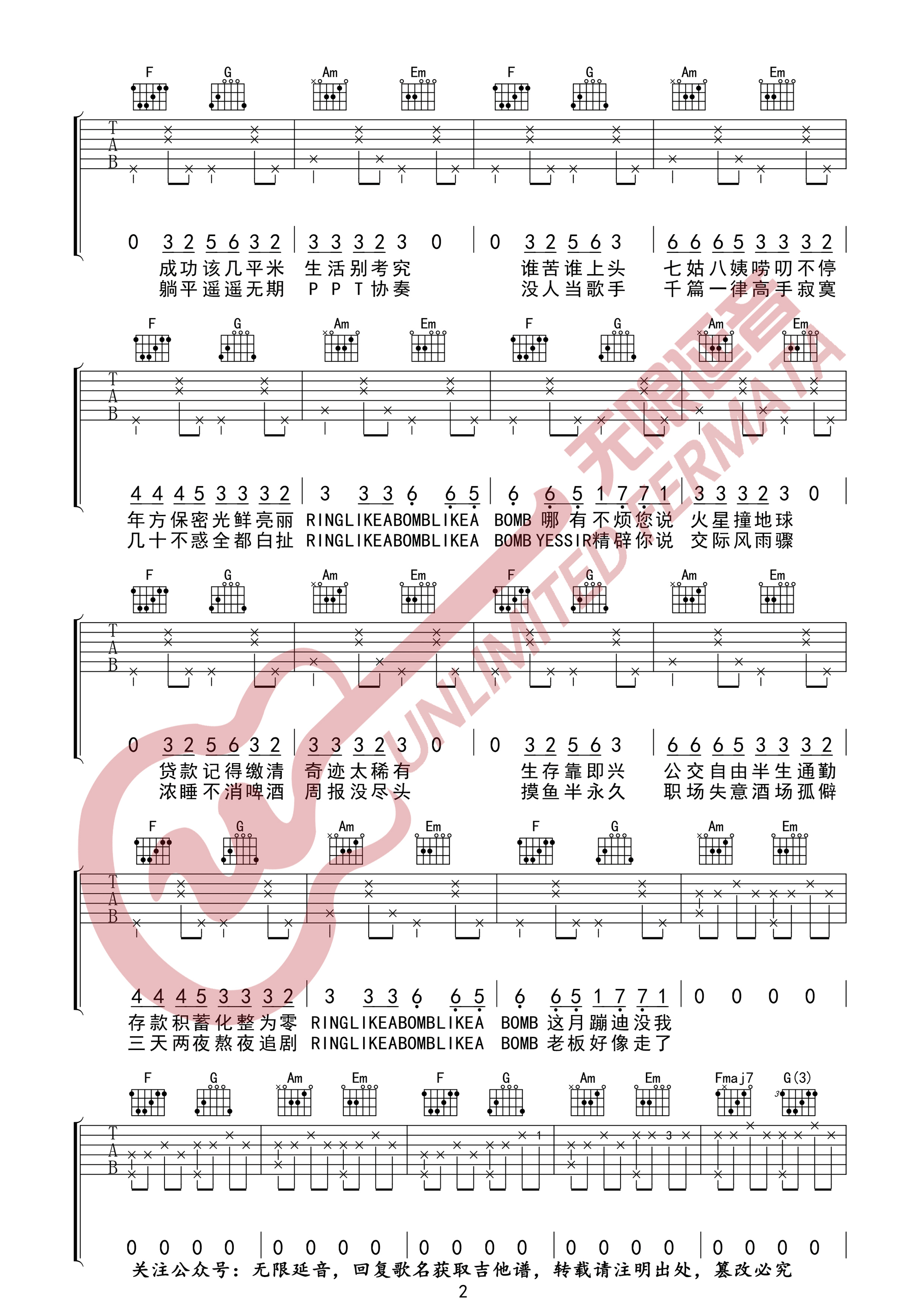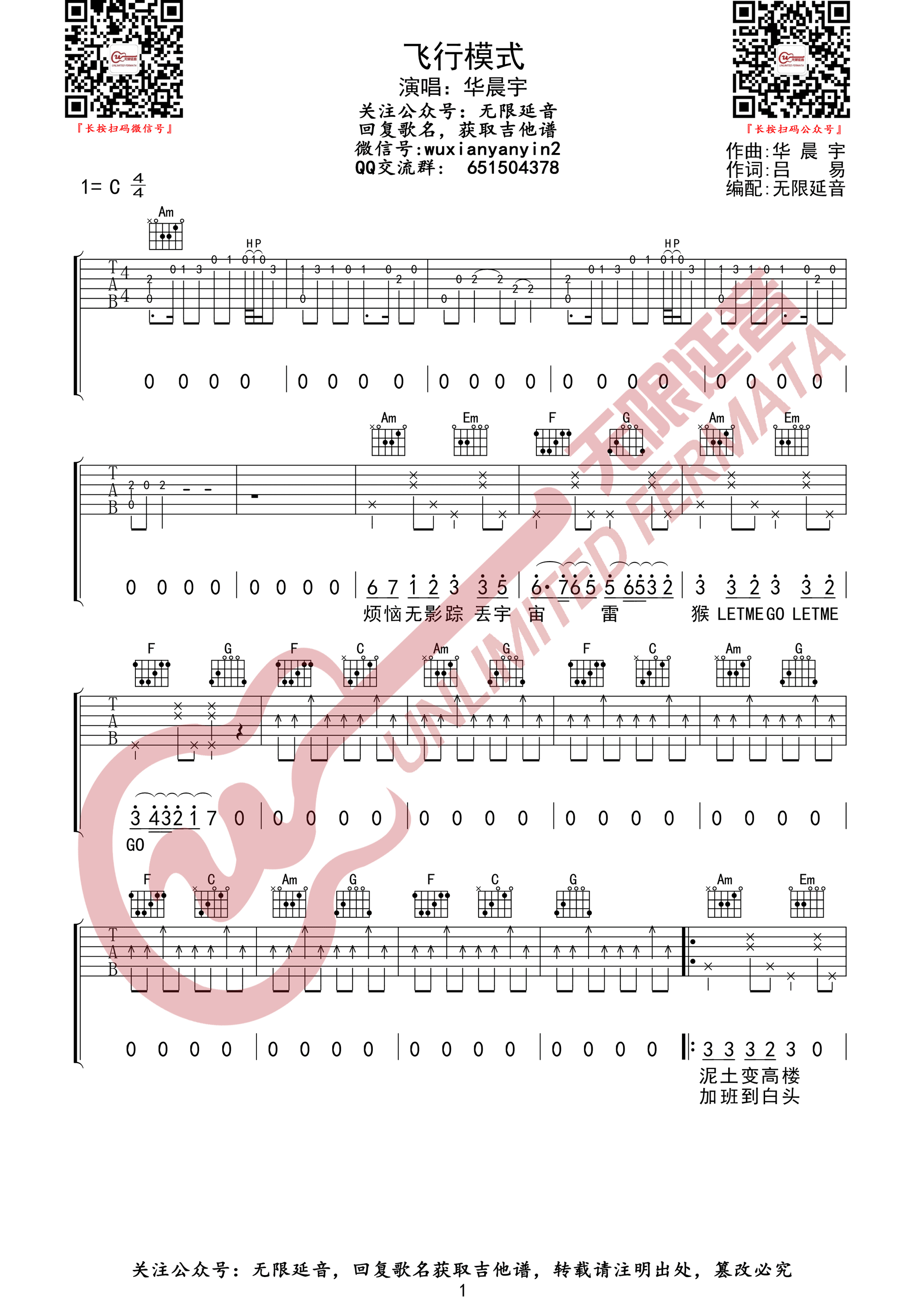 《华晨宇《飞行模式吉他谱》(C调)》内容来自于互联网,不能保证内容的准确性与完整性,仅供学习交流欣赏,请勿用于其它用途,内容版权归原作者及来源网站所有,如有侵犯到您的权益请来信告知,我们将及时删除。