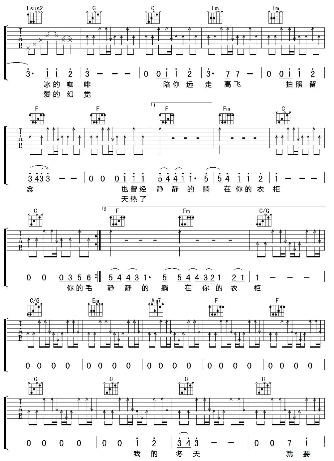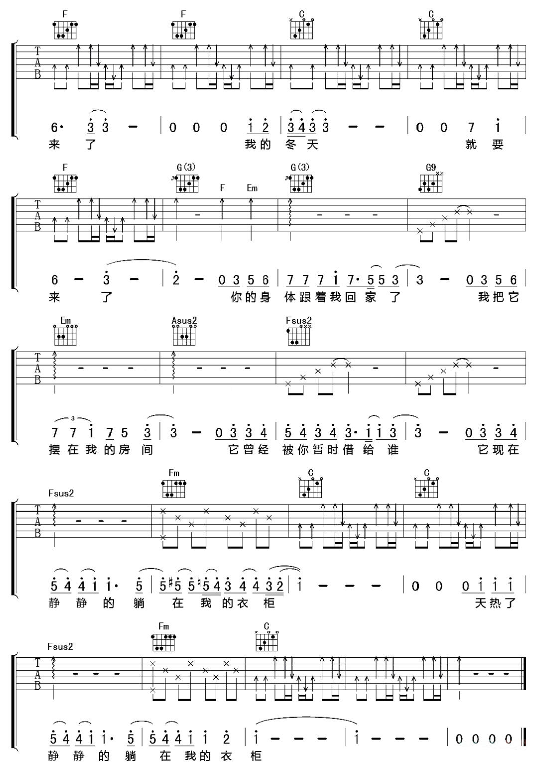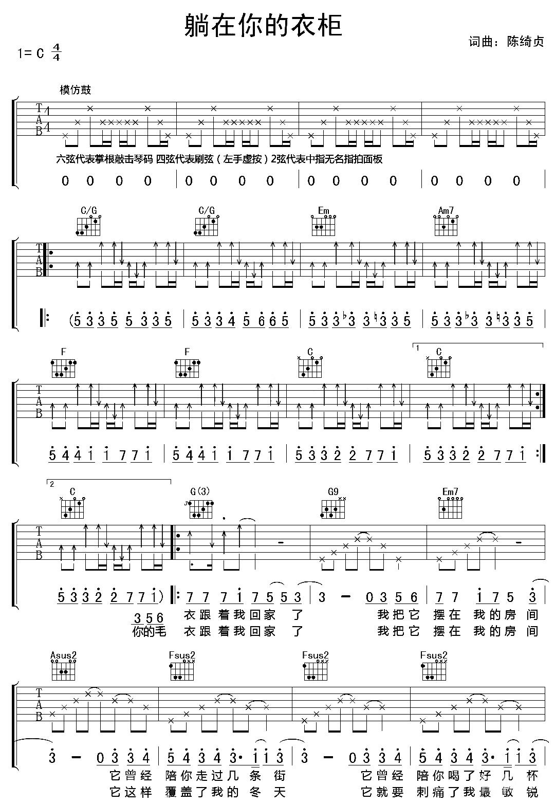 《陈绮贞《躺在你的衣柜吉他谱》(G调)》内容来自于互联网,不能保证内容的准确性与完整性,仅供学习交流欣赏,请勿用于其它用途,内容版权归原作者及来源网站所有,如有侵犯到您的权益请来信告知,我们将及时删除。