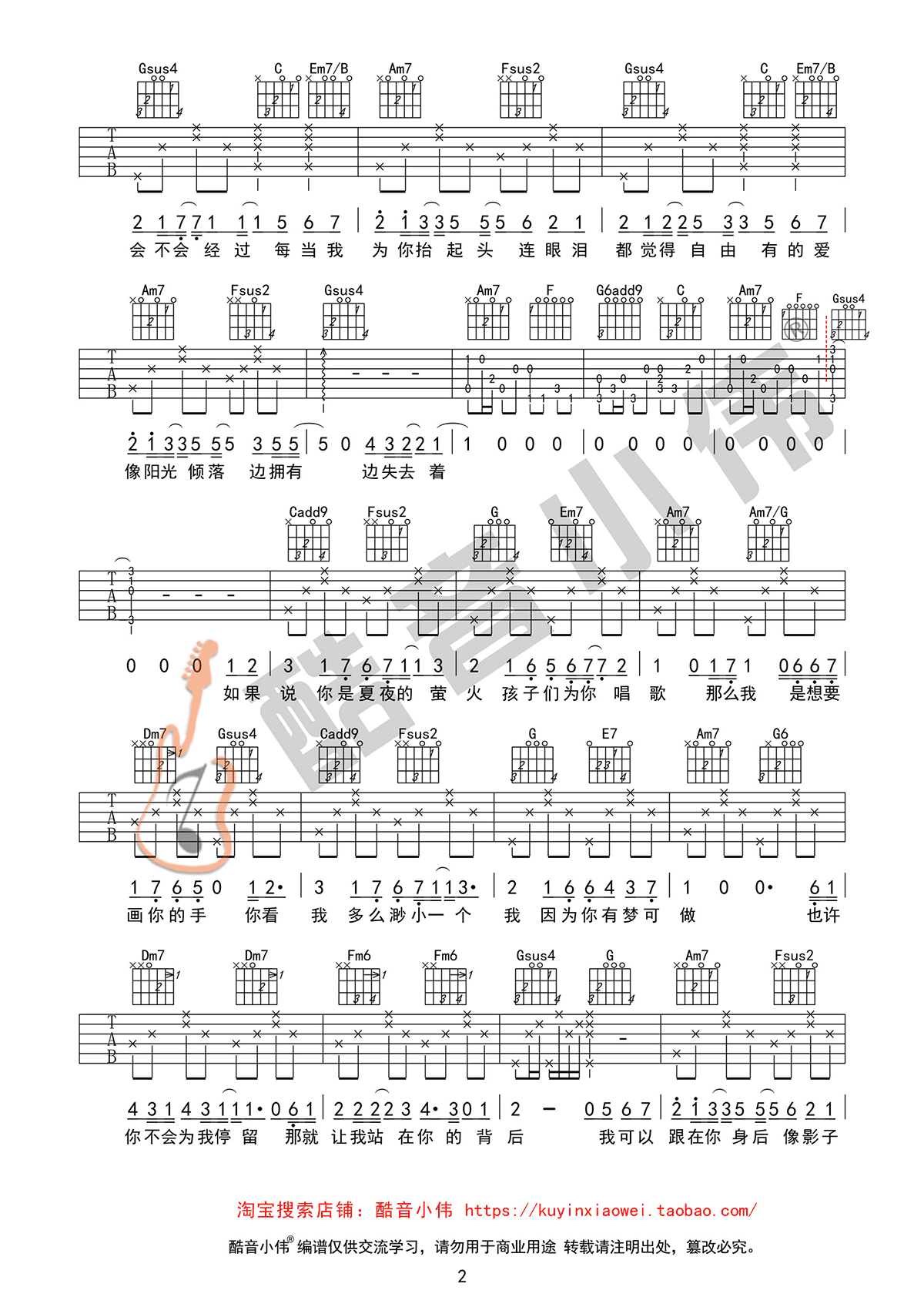 《岑宁儿《追光者吉他谱》(C调)》内容来自于互联网,不能保证内容的准确性与完整性,仅供学习交流欣赏,请勿用于其它用途,内容版权归原作者及来源网站所有,如有侵犯到您的权益请来信告知,我们将及时删除。