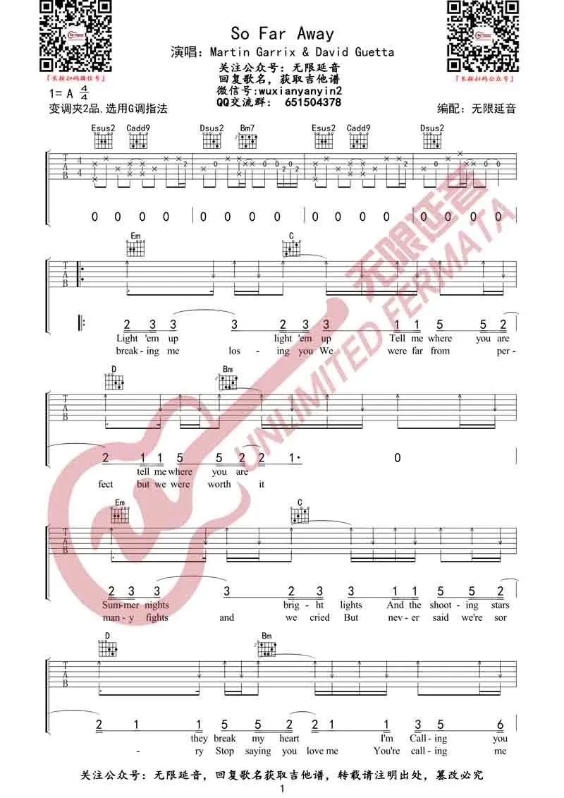 《Martin Garrix/David Guetta《So Far Away吉他谱》(G调)》内容来自于互联网,不能保证内容的准确性与完整性,仅供学习交流欣赏,请勿用于其它用途,内容版权归原作者及来源网站所有,如有侵犯到您的权益请来信告知,我们将及时删除。