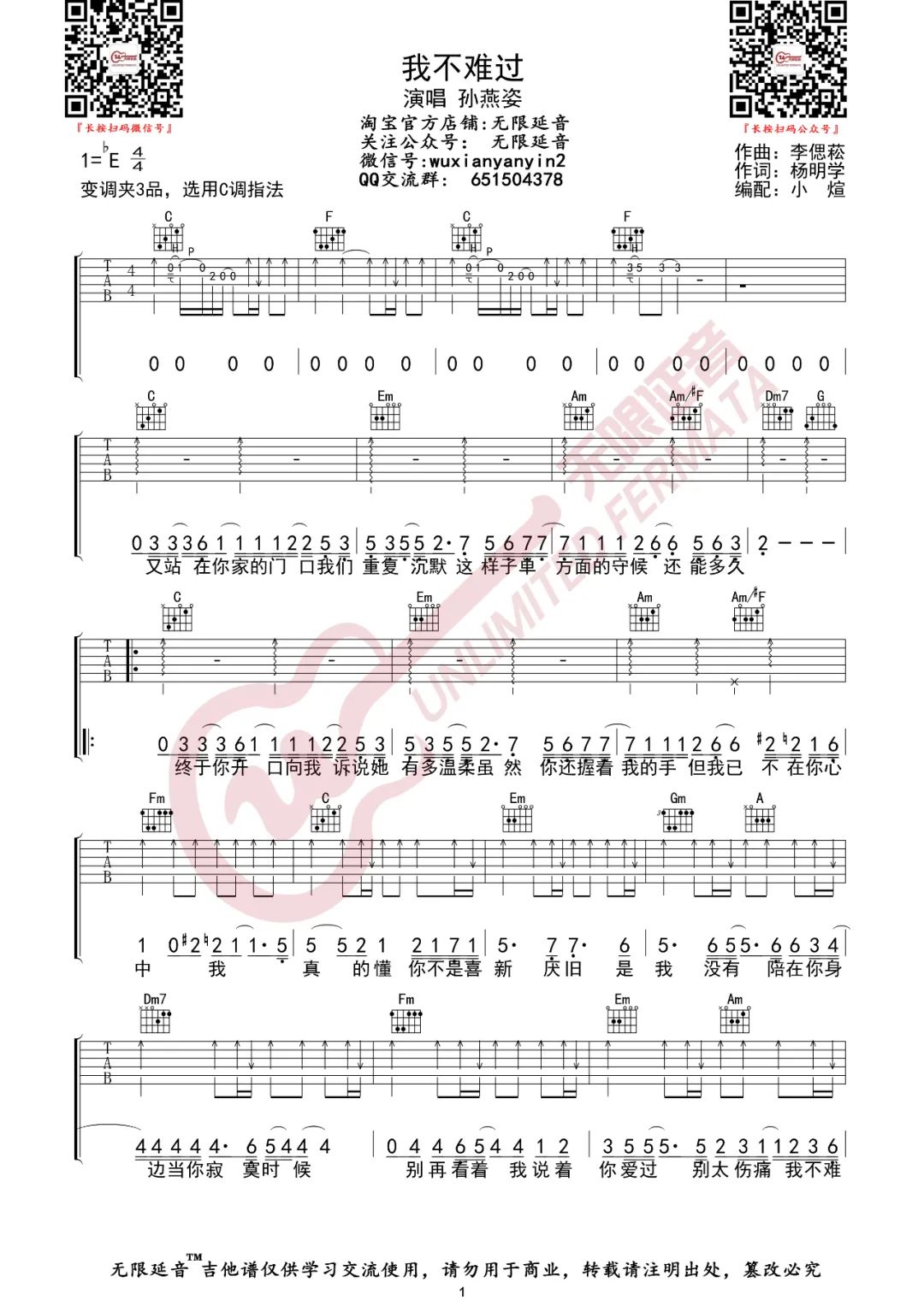 《孙燕姿《我不难过吉他谱》(G调)》内容来自于互联网,不能保证内容的准确性与完整性,仅供学习交流欣赏,请勿用于其它用途,内容版权归原作者及来源网站所有,如有侵犯到您的权益请来信告知,我们将及时删除。