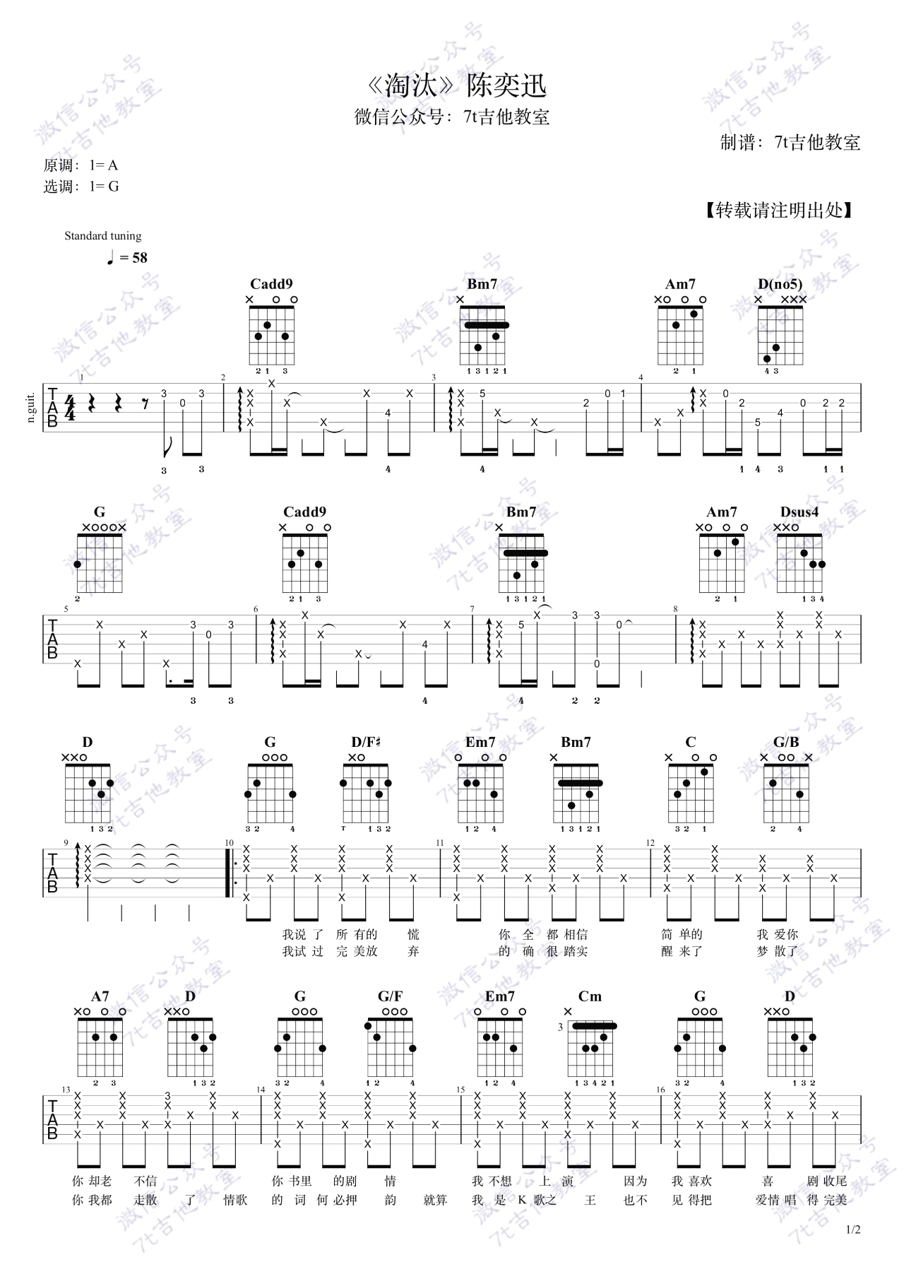 《陈奕迅《淘汰吉他谱》(C调)》内容来自于互联网,不能保证内容的准确性与完整性,仅供学习交流欣赏,请勿用于其它用途,内容版权归原作者及来源网站所有,如有侵犯到您的权益请来信告知,我们将及时删除。